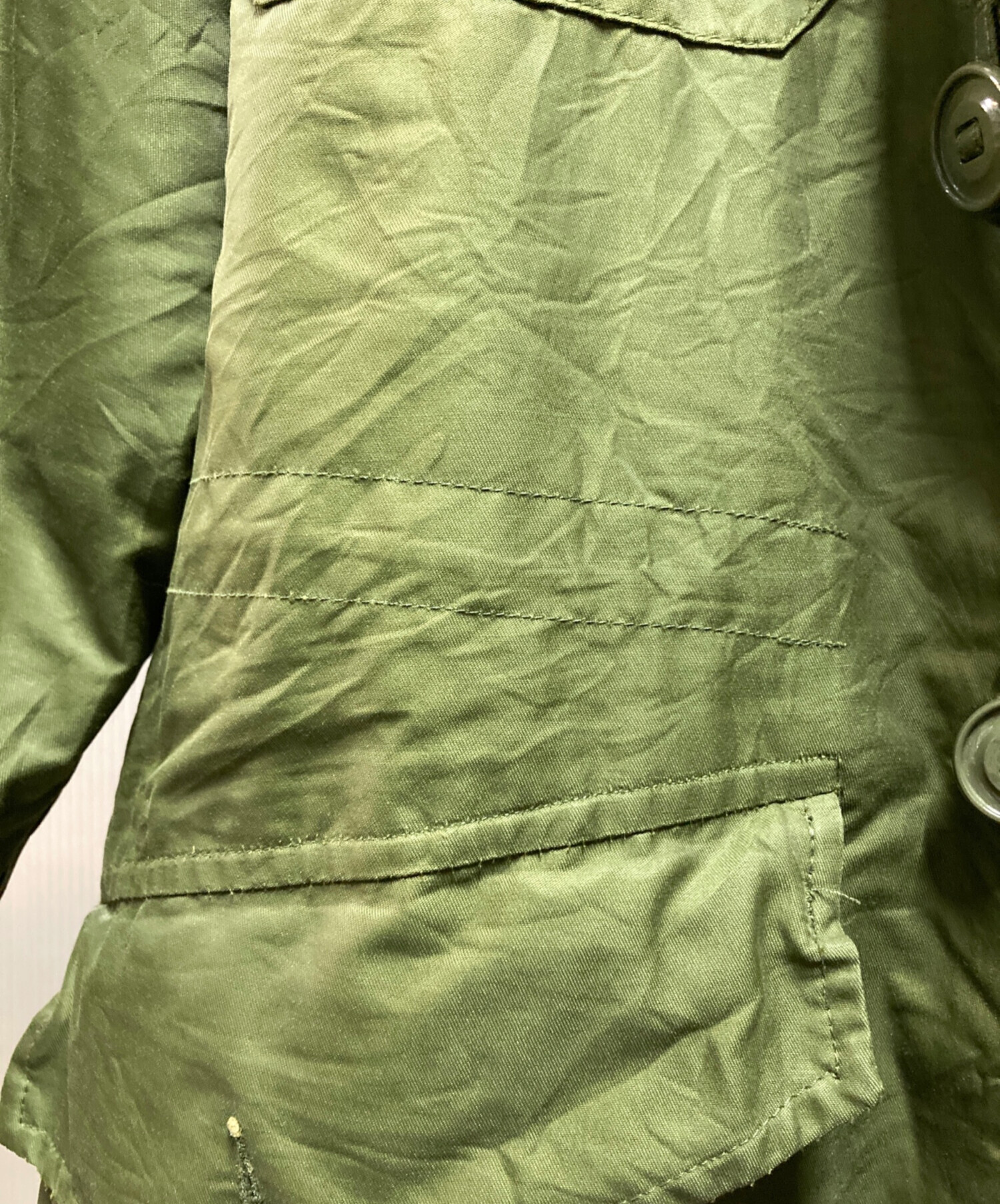 目立つシミや汚れ、におい等がある場合は商品画像や説明文にて極力表記させていただいておりますが、中古品という商品の特性上、全ての瑕疵や不備、洋服直し箇所を撮影・記載をすることは難しくなっております。また、ほとんどのアイテムは店頭と併売しておりますため、出品掲載時からコンディションが変動している場合もございます。あらかじめご了承くださいませ。