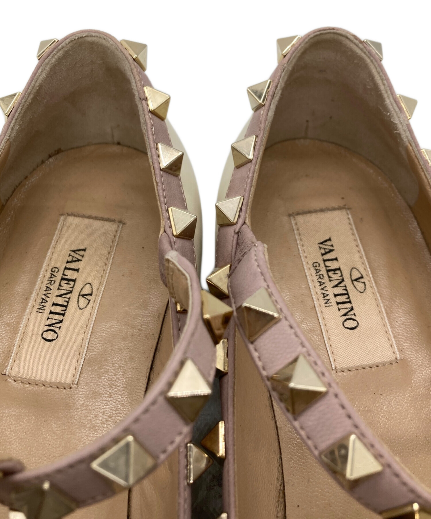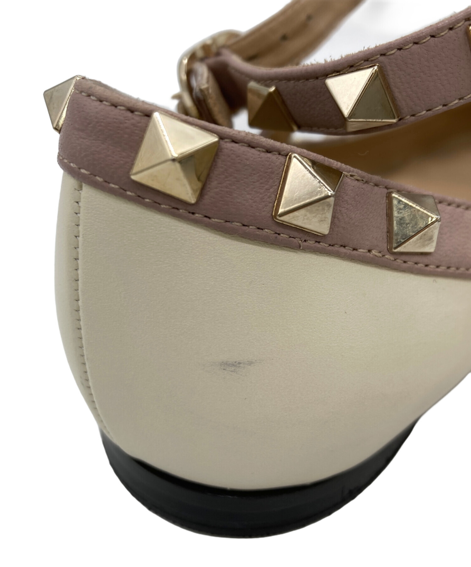 • VALENTINO(ヴァレンティノ)VALENTINO (ヴァレンティノ) ポインテッドトゥロックスタッズバレリーナシューズ アイボリー×ラベンダー サイズ:36の古着・服飾アイテム ヨゴレ有