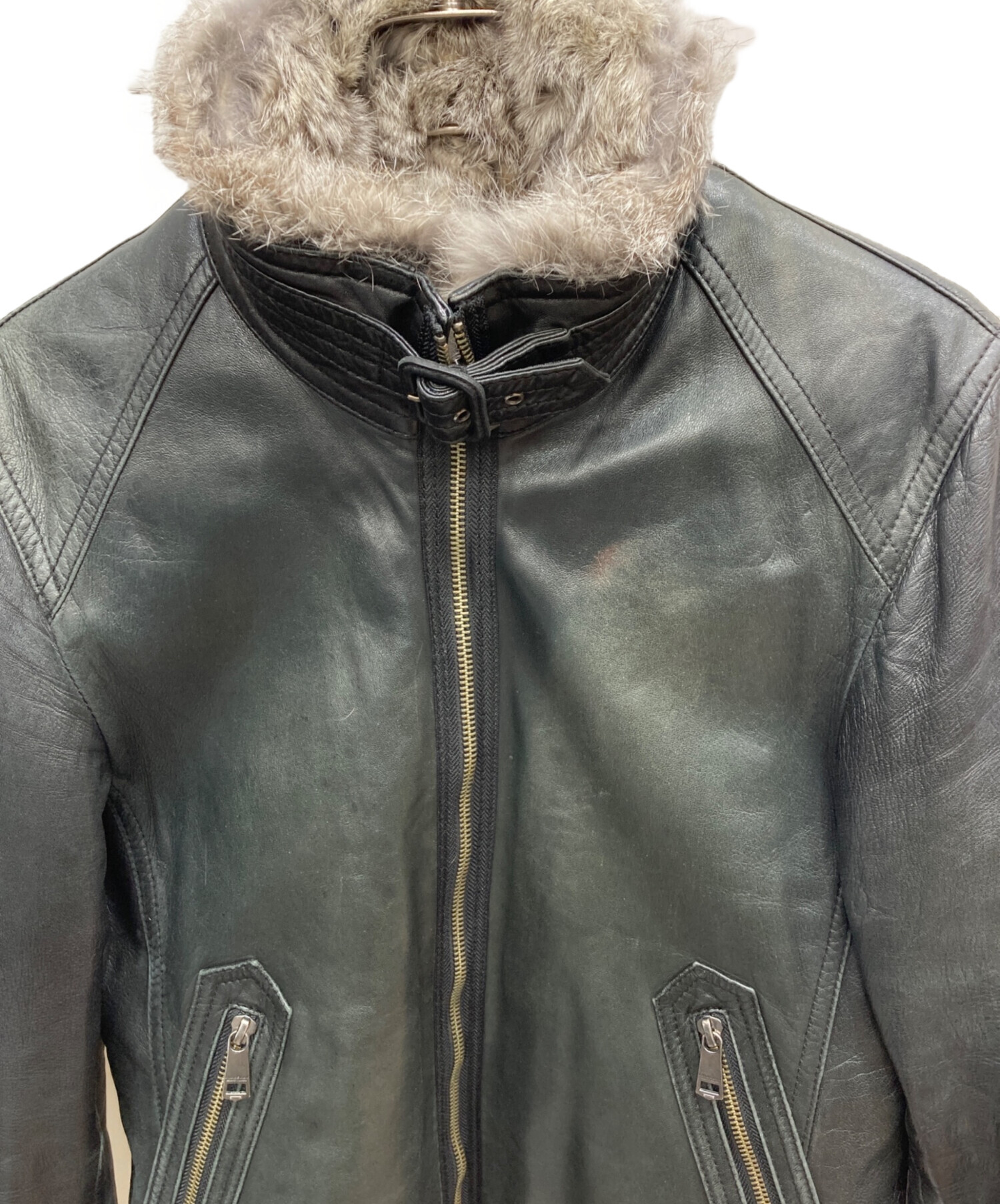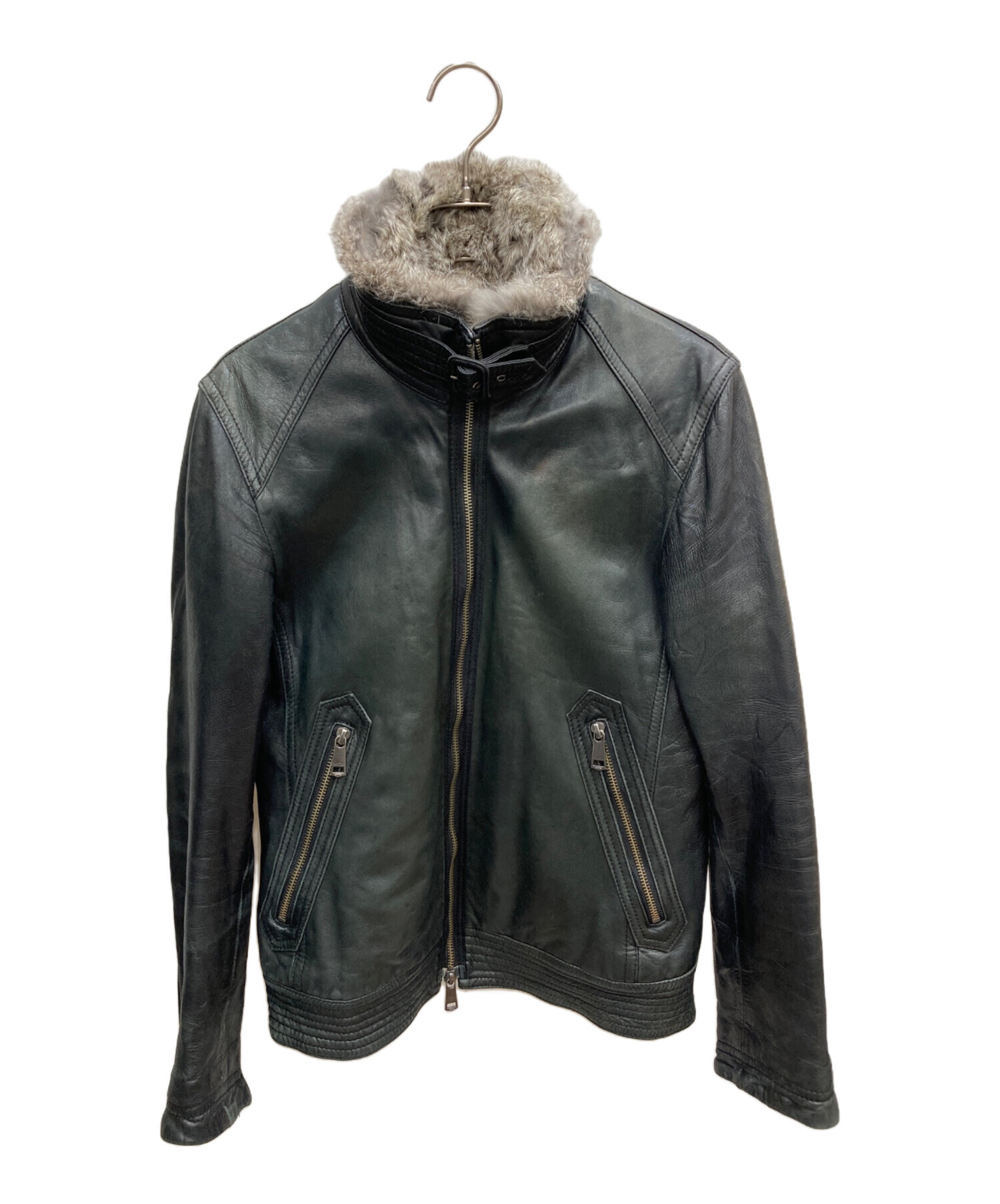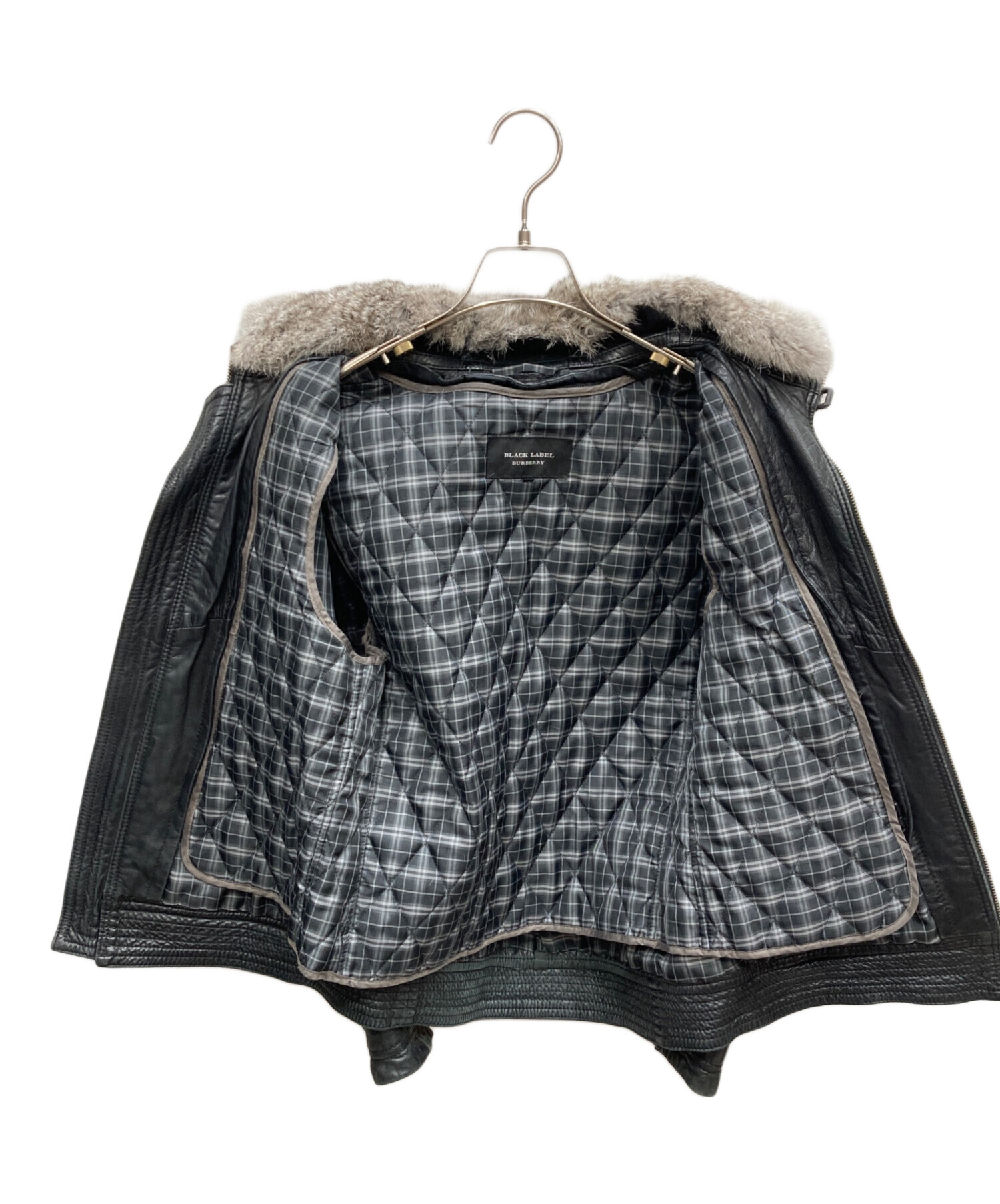 • BURBERRY BLACK LABEL(バーバリーブラックレーベル)BURBERRY BLACK LABEL (バーバリーブラックレーベル) ライナー付シングルライダースジャケット ブラック サイズ:Mの古着・服飾アイテム ヤケ有