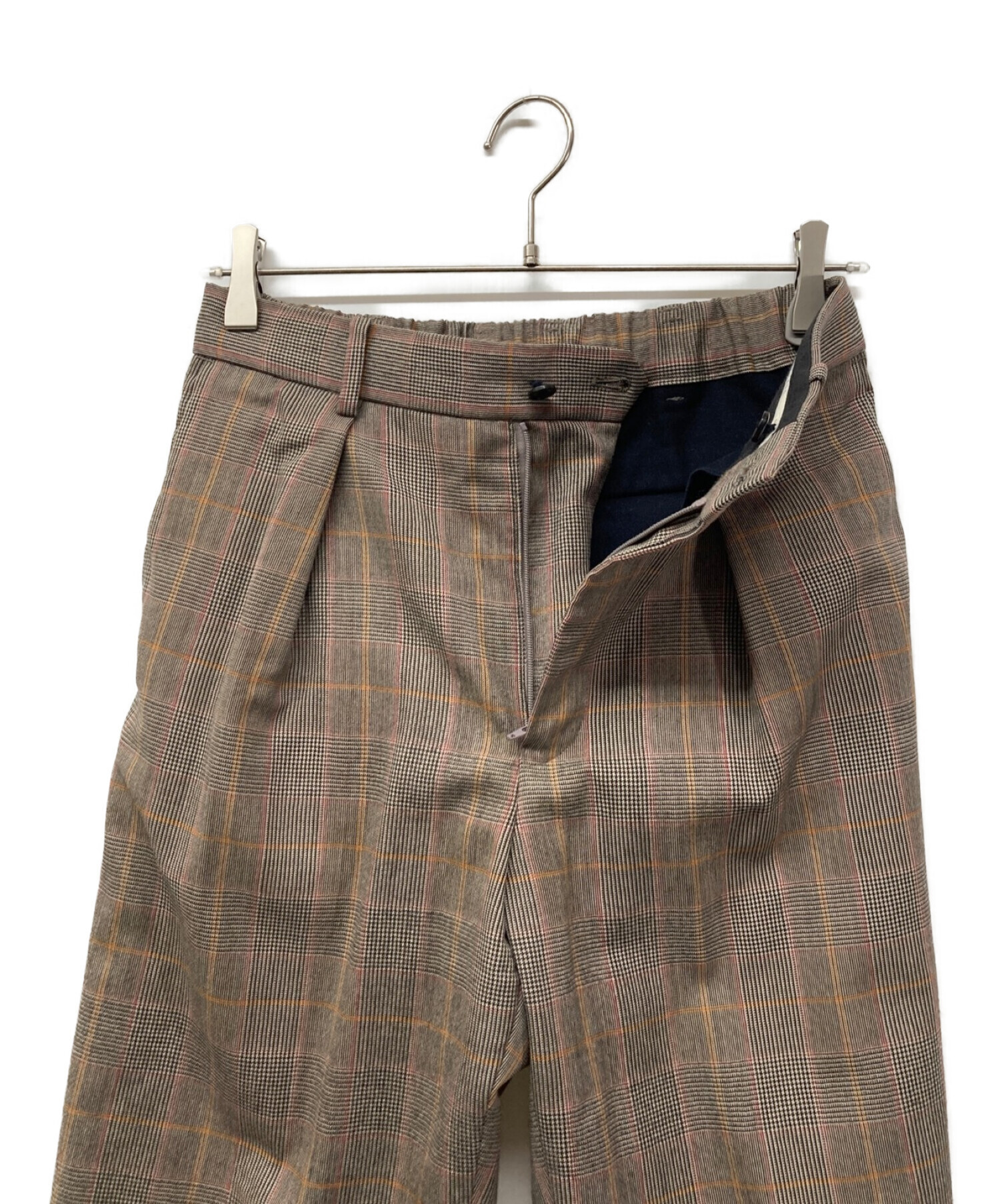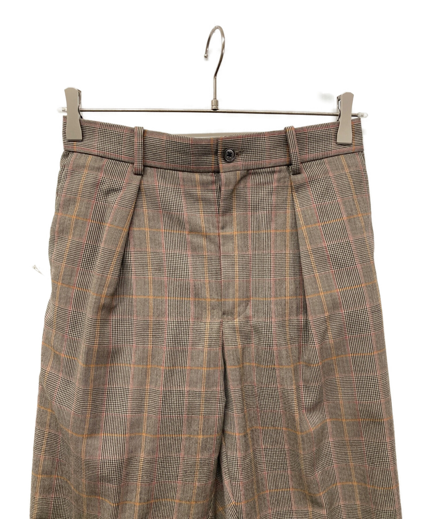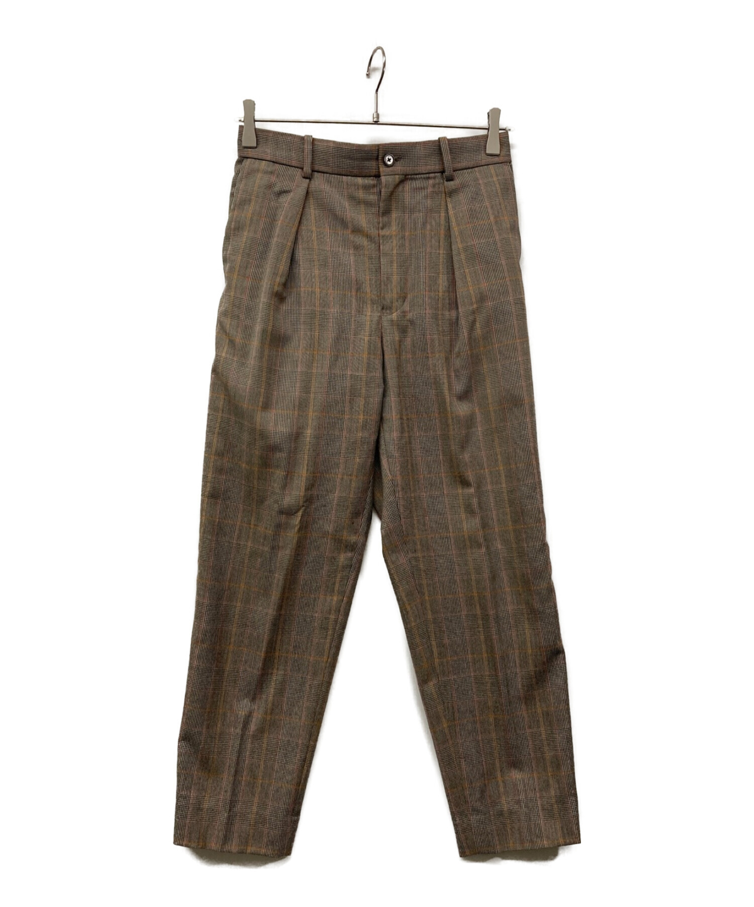 FRONT PLEATS PEGTOP BROWN CHECK フロントプリーツ ペグトップパンツ テーパードパンツ A19D-01PT01C