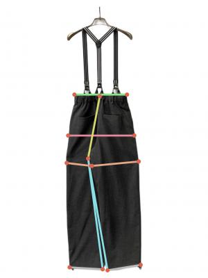 | 素材 | 表地:ポリエステル 83% レーヨン 13% ポリウレタン 4% 裏地:ポリエステル 100% サスペンダー部分:ポリエステル 70% ポリウレタン 30% 別布部分:合成皮革 |