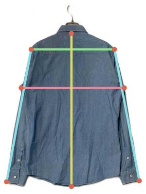 当サイトでは商品の表記サイズの他に、出品商品を採寸しサイズを記載しております。また、実際のアイテム画像を使用した計測とイラストを使用した計測の2パターンがございます。