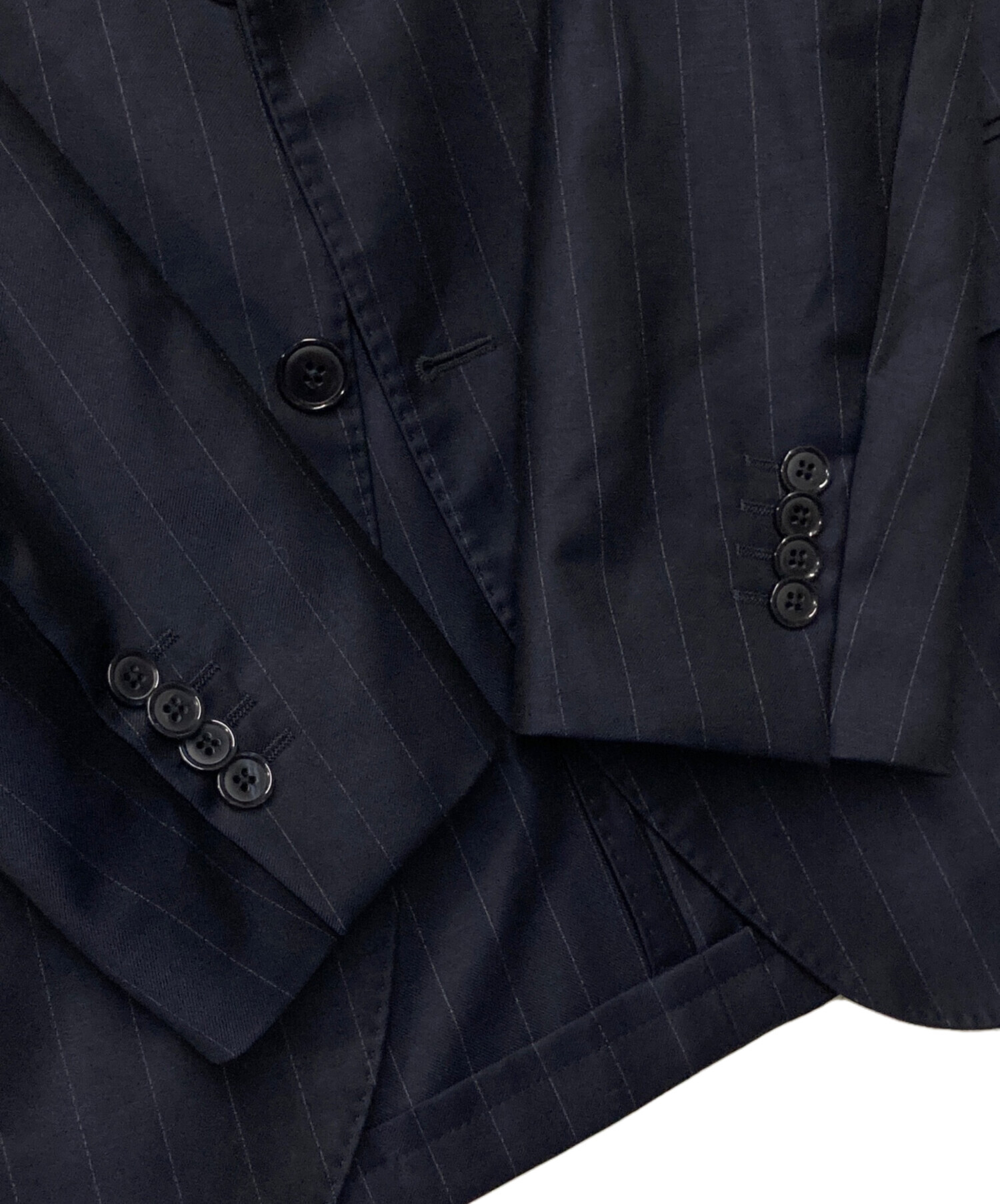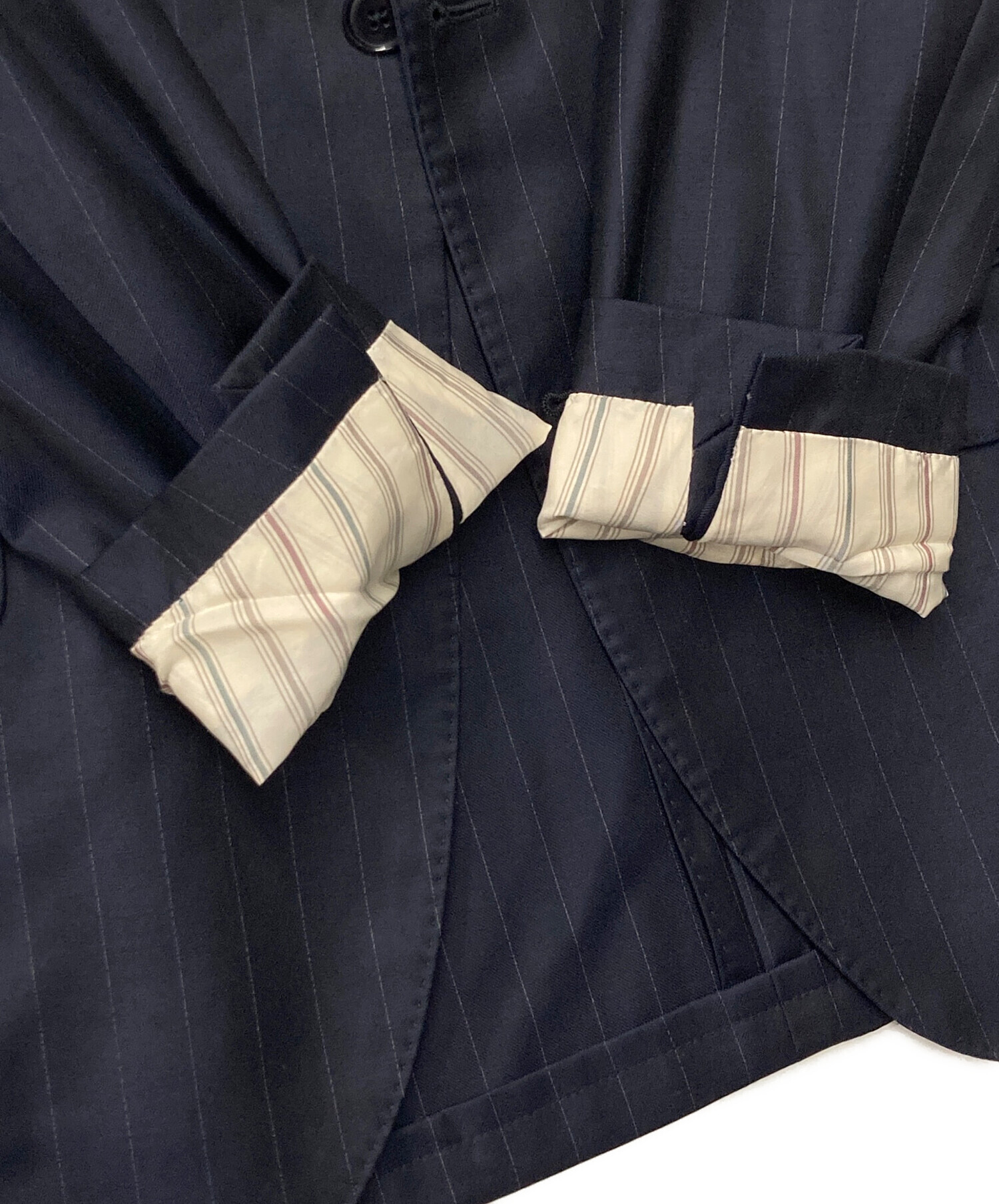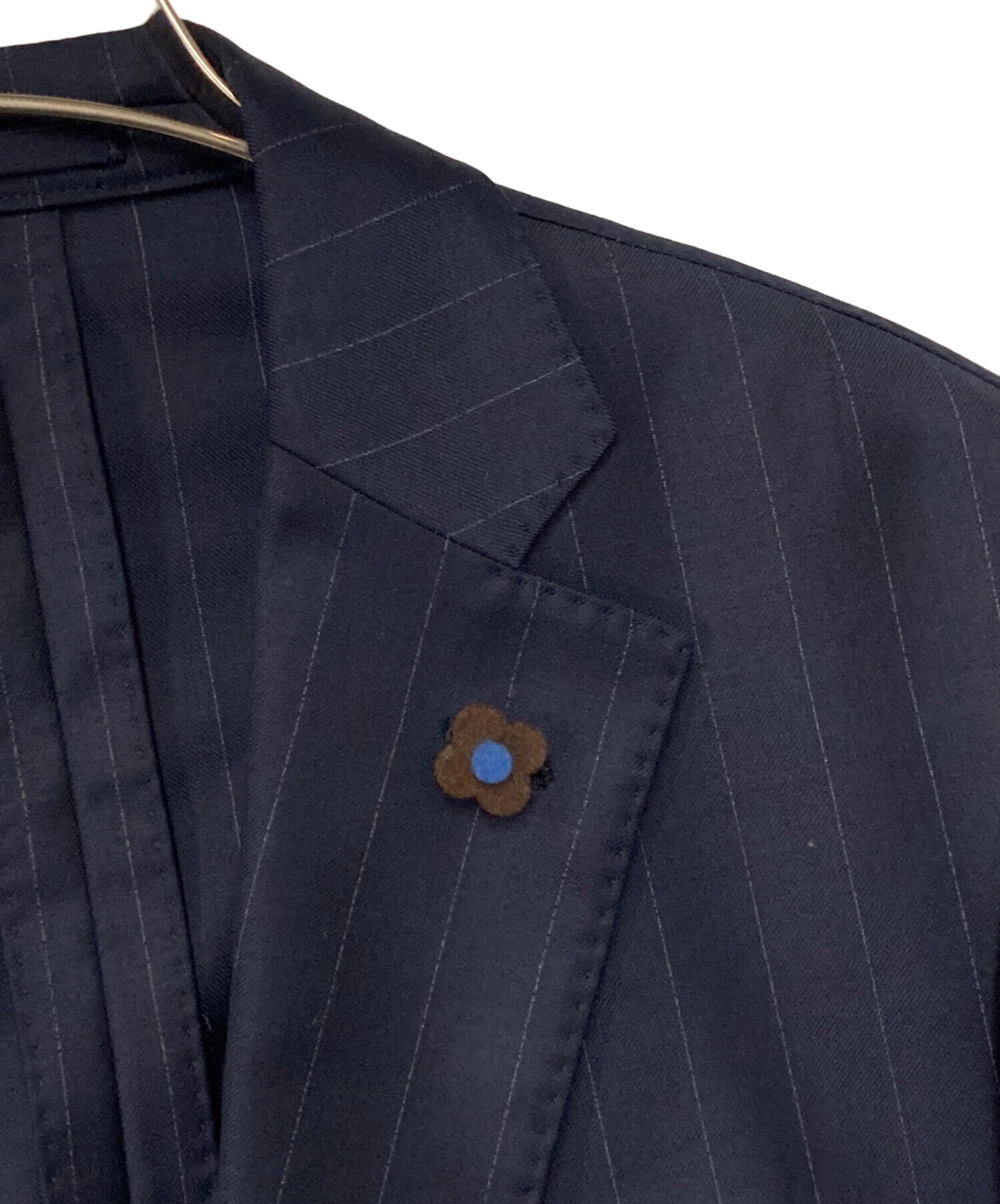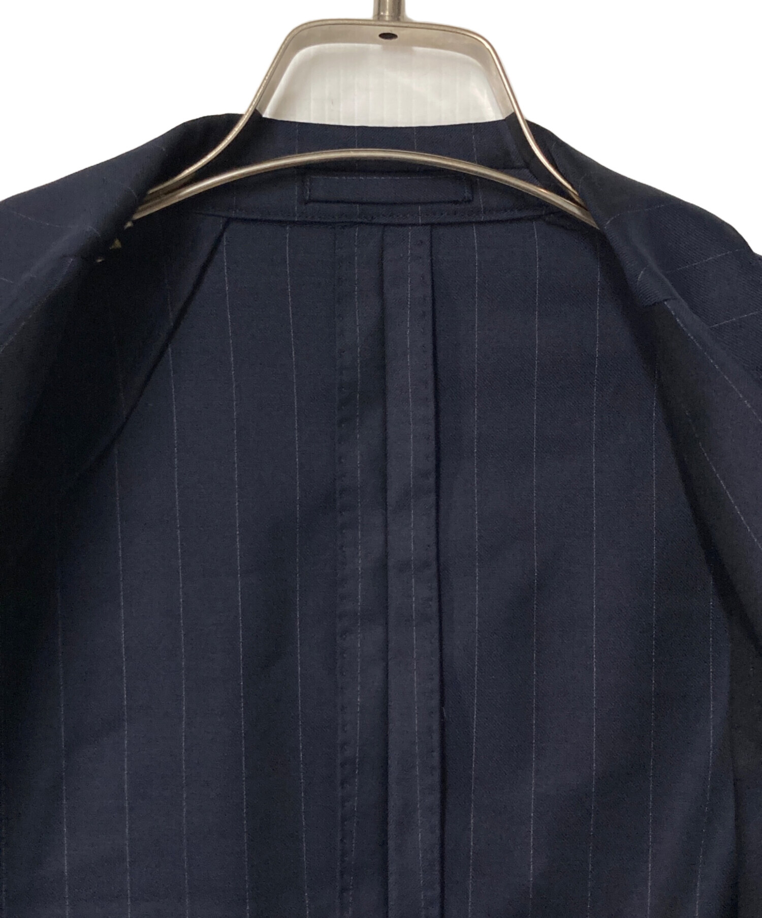 ウールストライプ テーラードジャケット 仮切羽 段返り ブートニエール付
