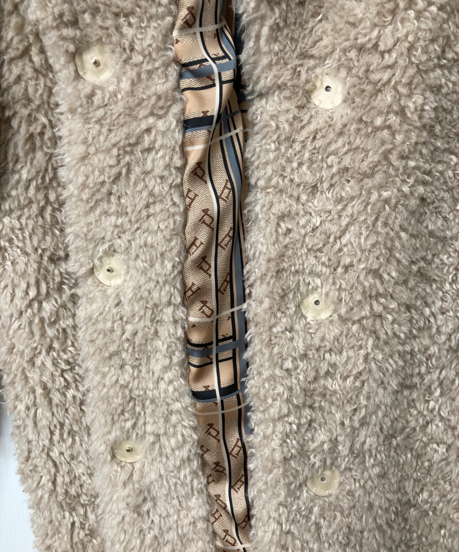 | アイテム名 | シングルコート "CURLY FAUX FUR OVERSIZE FIT" フェイクファー ボア 裏地総柄 |