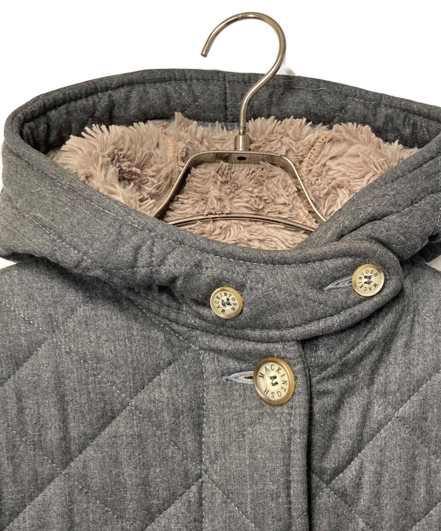 | アイテム名 | ボアフーデッド キルティングコート グレー 英国製 イギリス製 スコットランド製 ウール |
