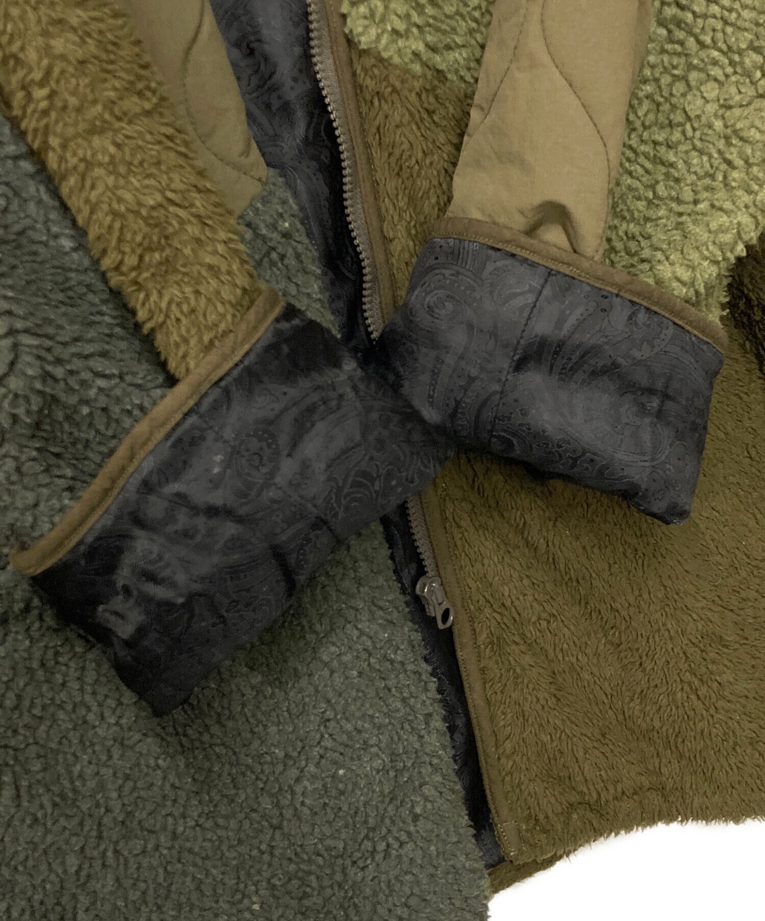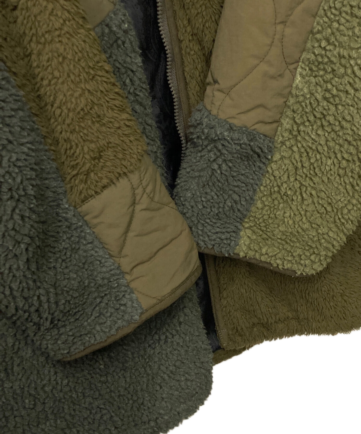 | アイテム名 | 別注 パッチワークキルティングジャケット 切替ジャケット ボアジャケット オリーブ ナイロン 中綿ジャケット |
