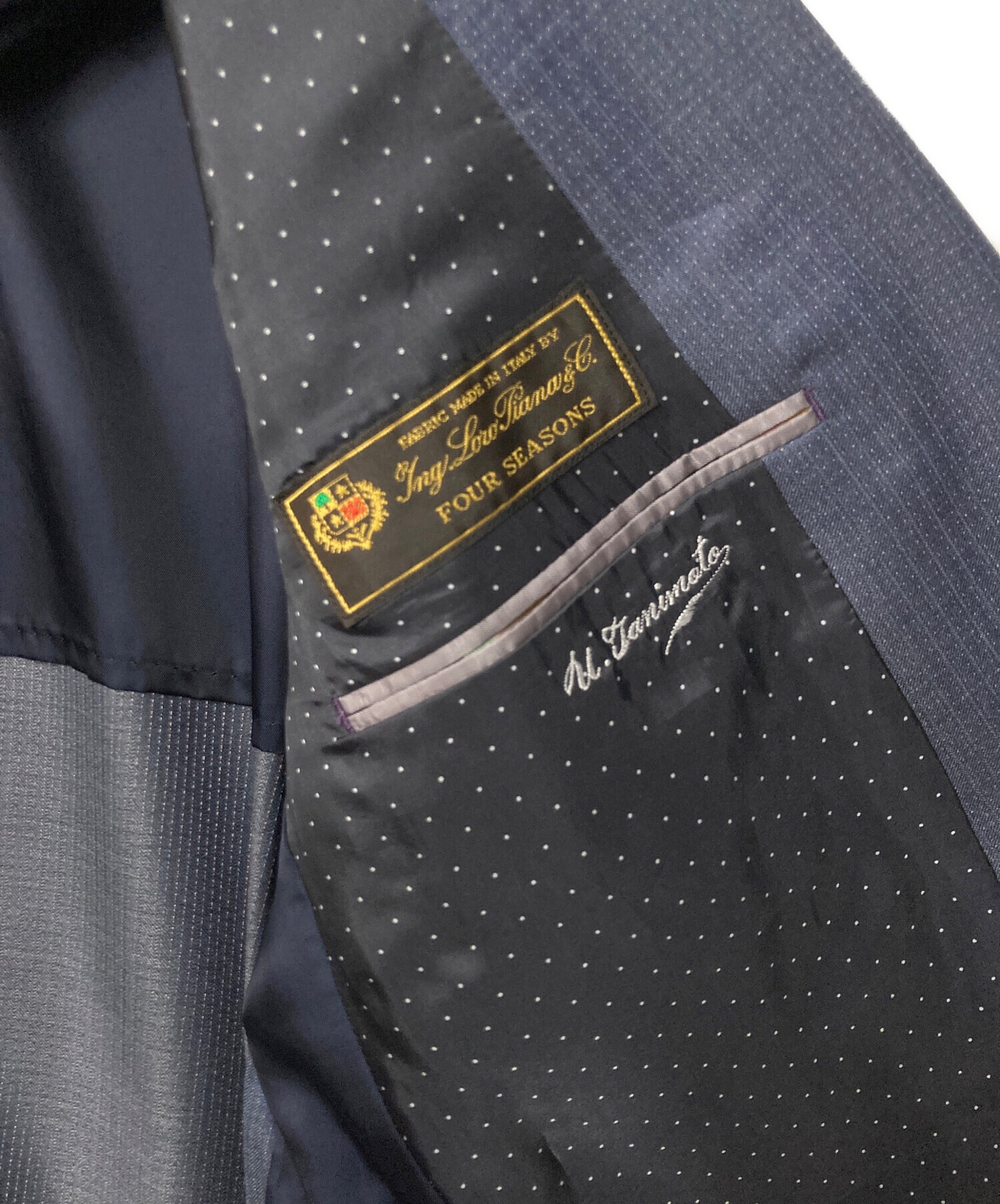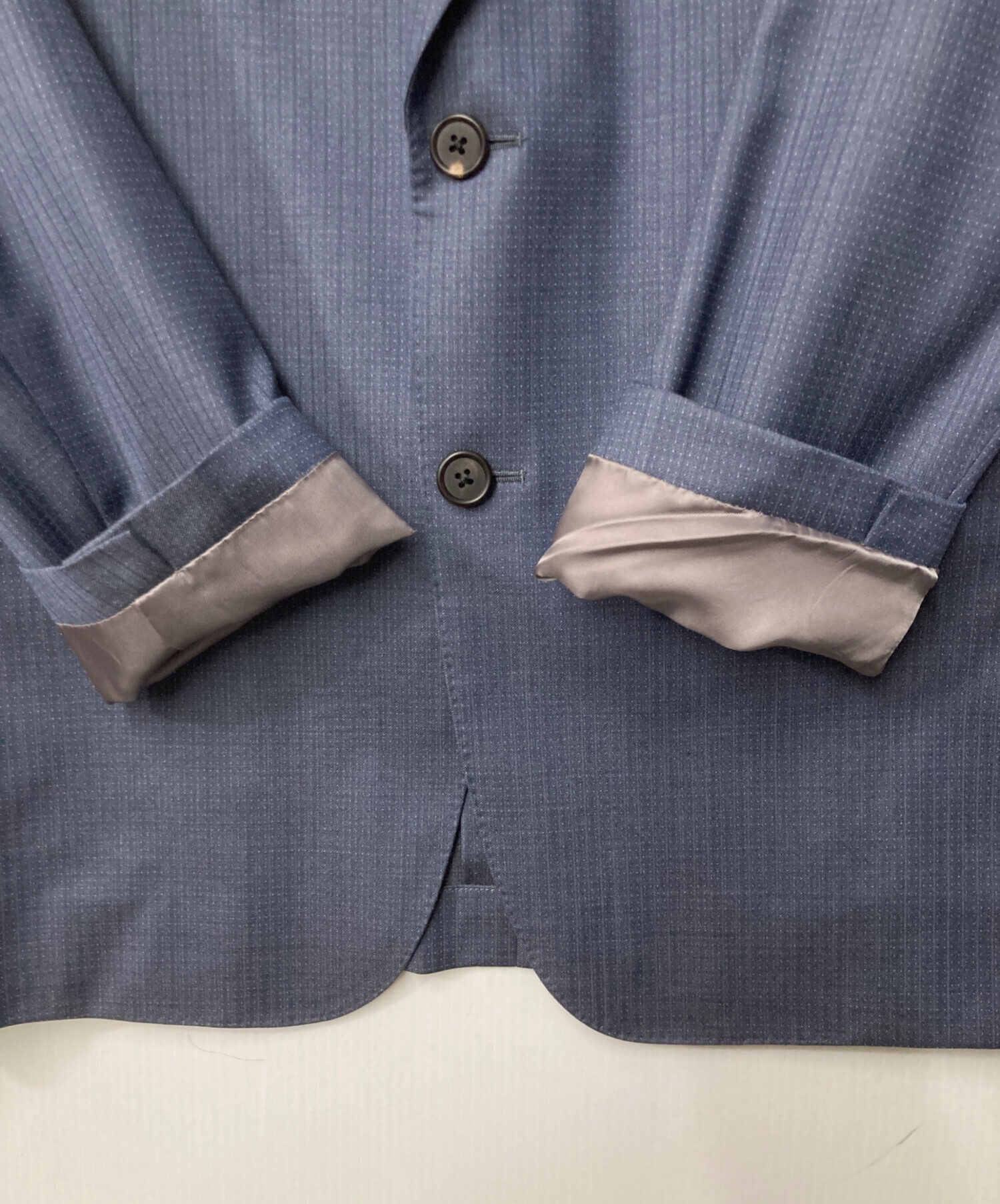 | 素材 | ジャケット 表地 毛 98% シルク 2% 裏地 キュプラ パンツ 毛 98% シルク 2% ジレ 表地 毛 98% シルク 2% 裏地 キュプラ 100% |