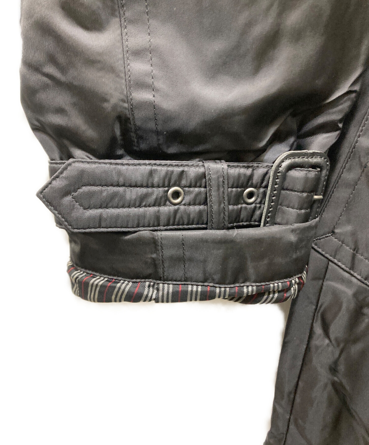 | スタッフコメント | 裏地が目を引くチェックの中綿トレンチコートです。背面のベルトでシルエットを調節しての着@用も可能となっております。 |