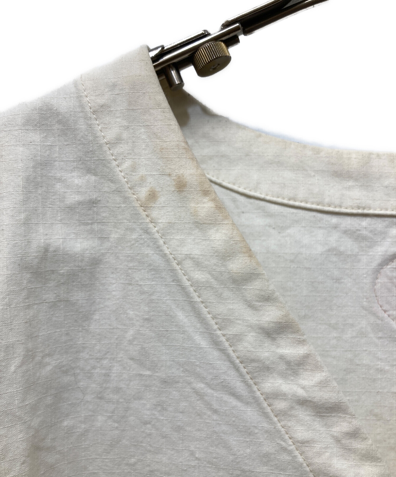 目立つシミや汚れ、におい等がある場合は商品画像や説明文にて極力表記させていただいておりますが、中古品という商品の特性上、全ての瑕疵や不備、洋服直し箇所を撮影・記載をすることは難しくなっております。また、ほとんどのアイテムは店頭と併売しておりますため、出品掲載時からコンディションが変動している場合もございます。あらかじめご了承くださいませ。
