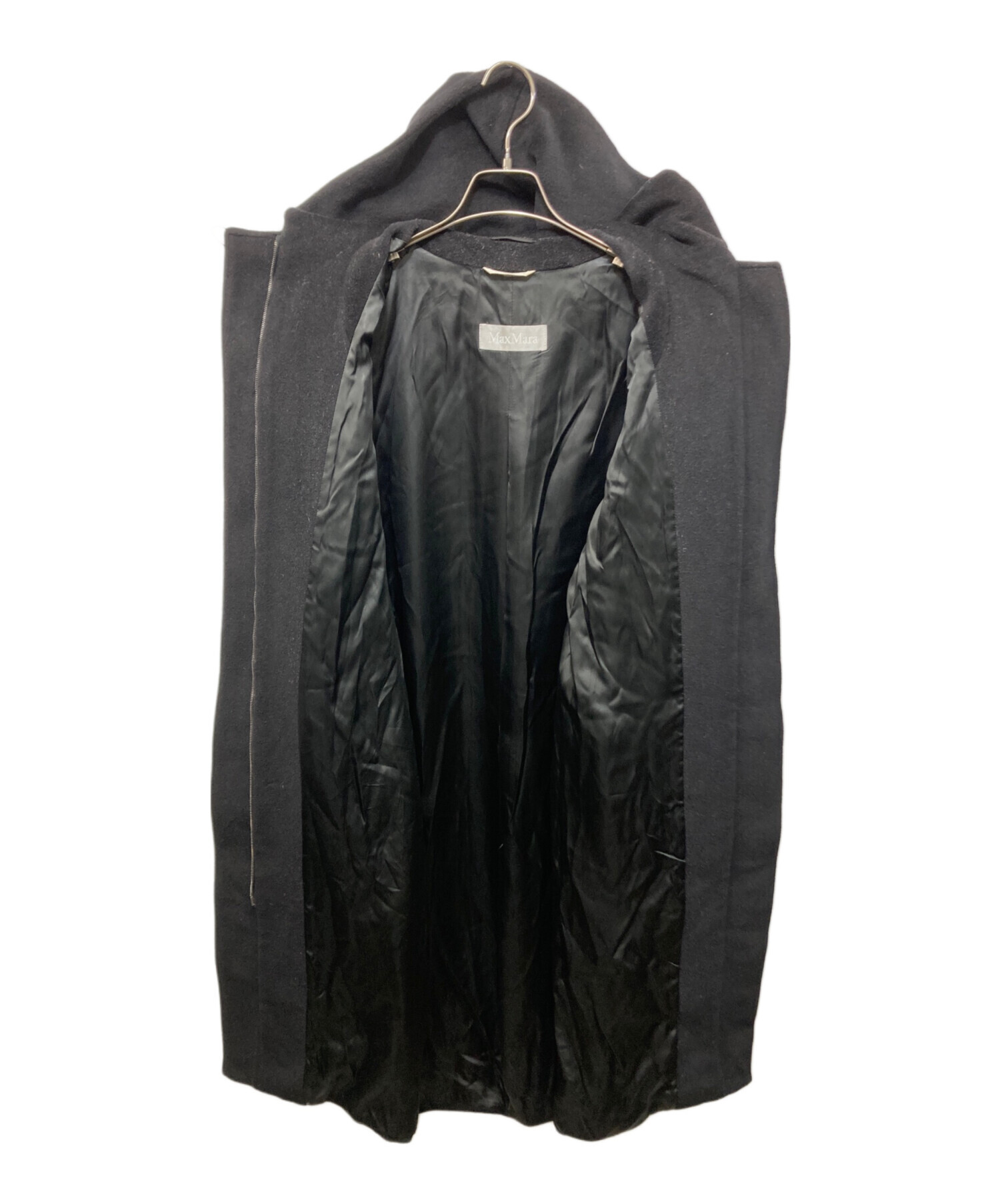 • MaxMara(マックスマーラ)MaxMara (マックスマーラ) ヴァージンウール フーデッドコート ブラック サイズ:40の古着・服飾アイテム ジップキズ有