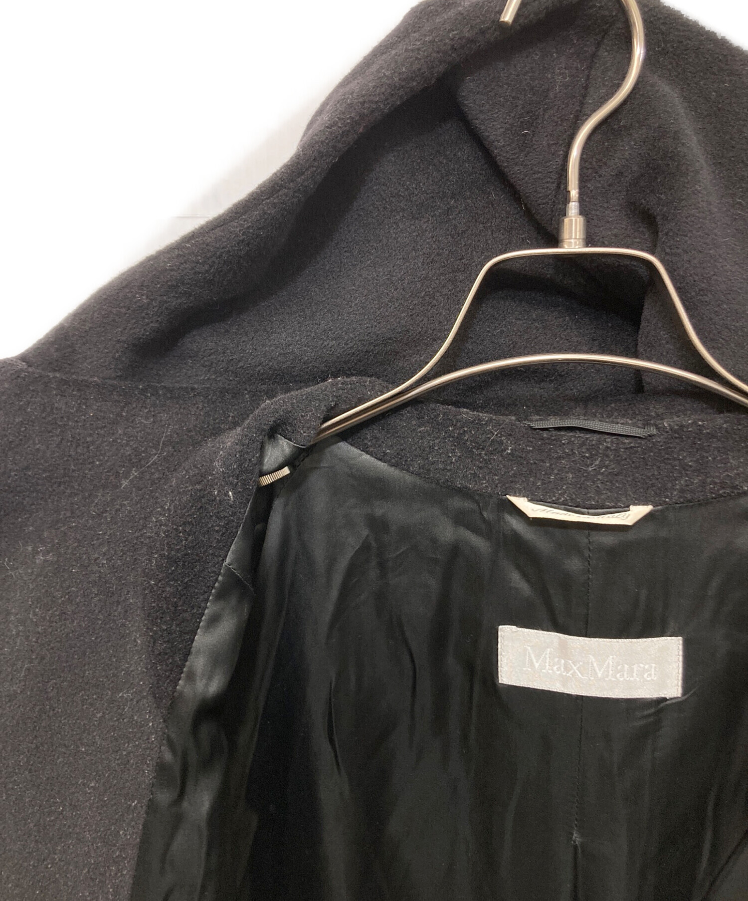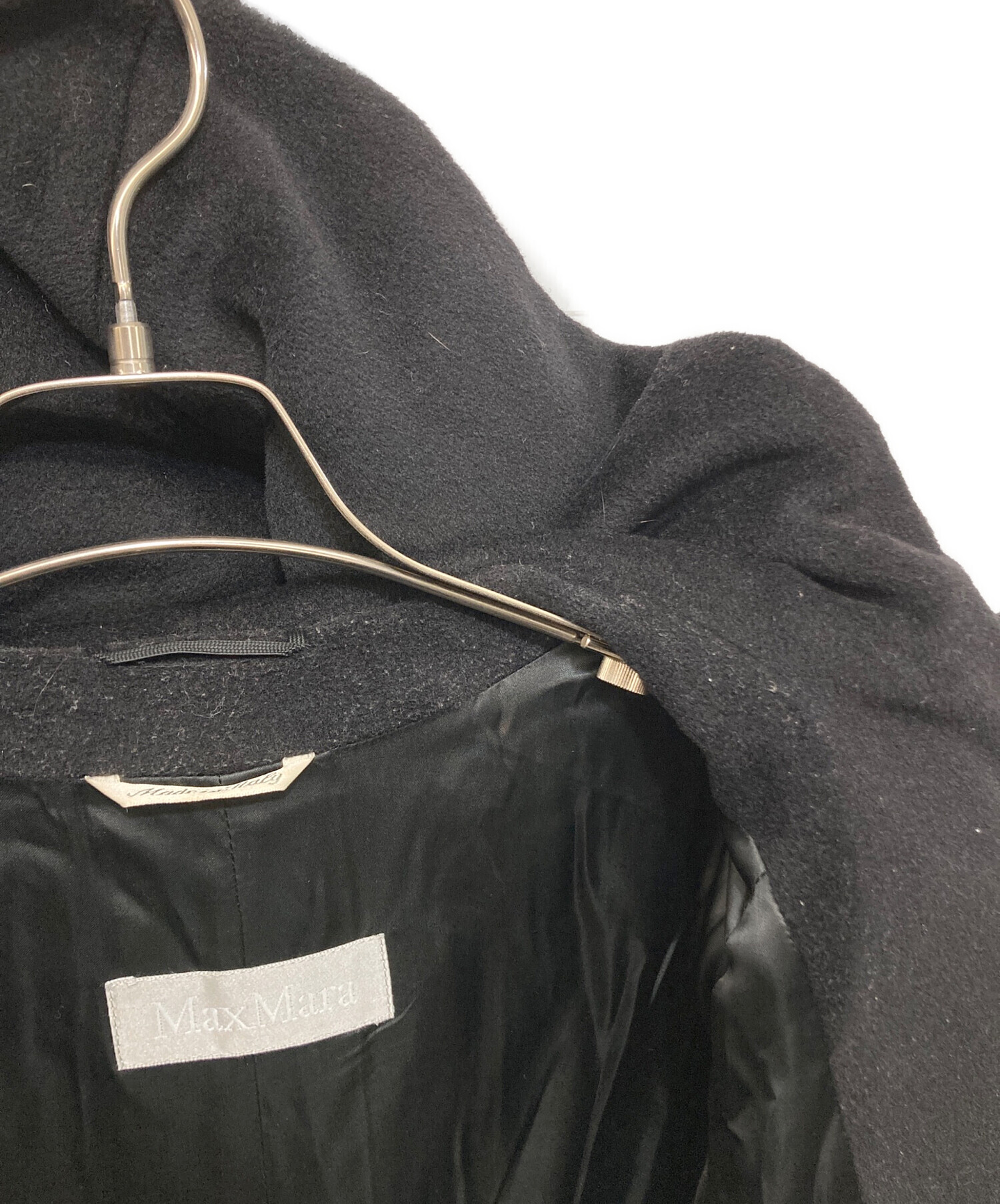 • MaxMara(マックスマーラ)MaxMara (マックスマーラ) ヴァージンウール フーデッドコート ブラック サイズ:40の古着・服飾アイテム ヨゴレ有