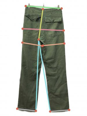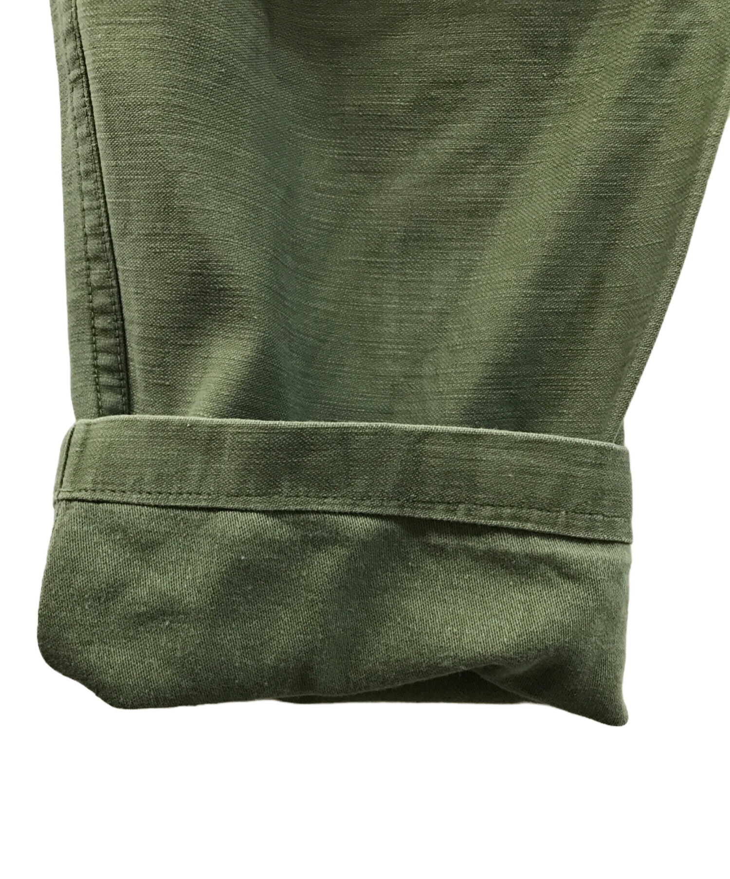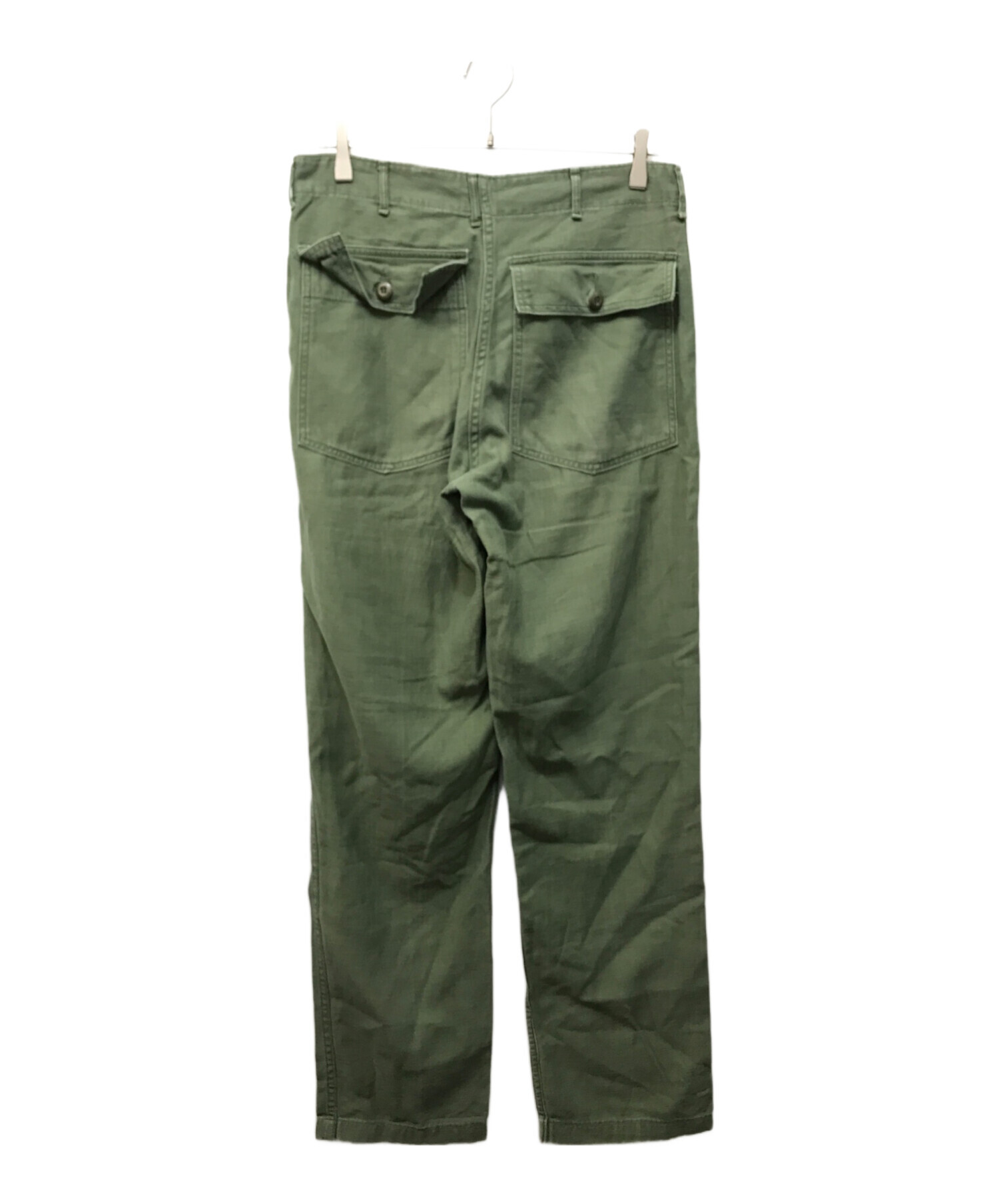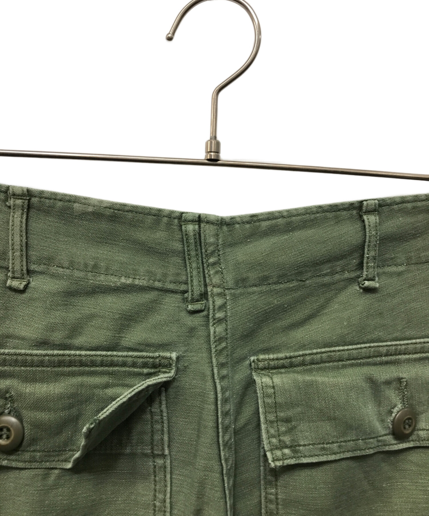 • US ARMY(ユーエスアーミー)US ARMY (ユーエスアーミー) コットンサテンベイカーパンツ オリーブ サイズ:32の古着・服飾アイテム 各所毛羽立ち有