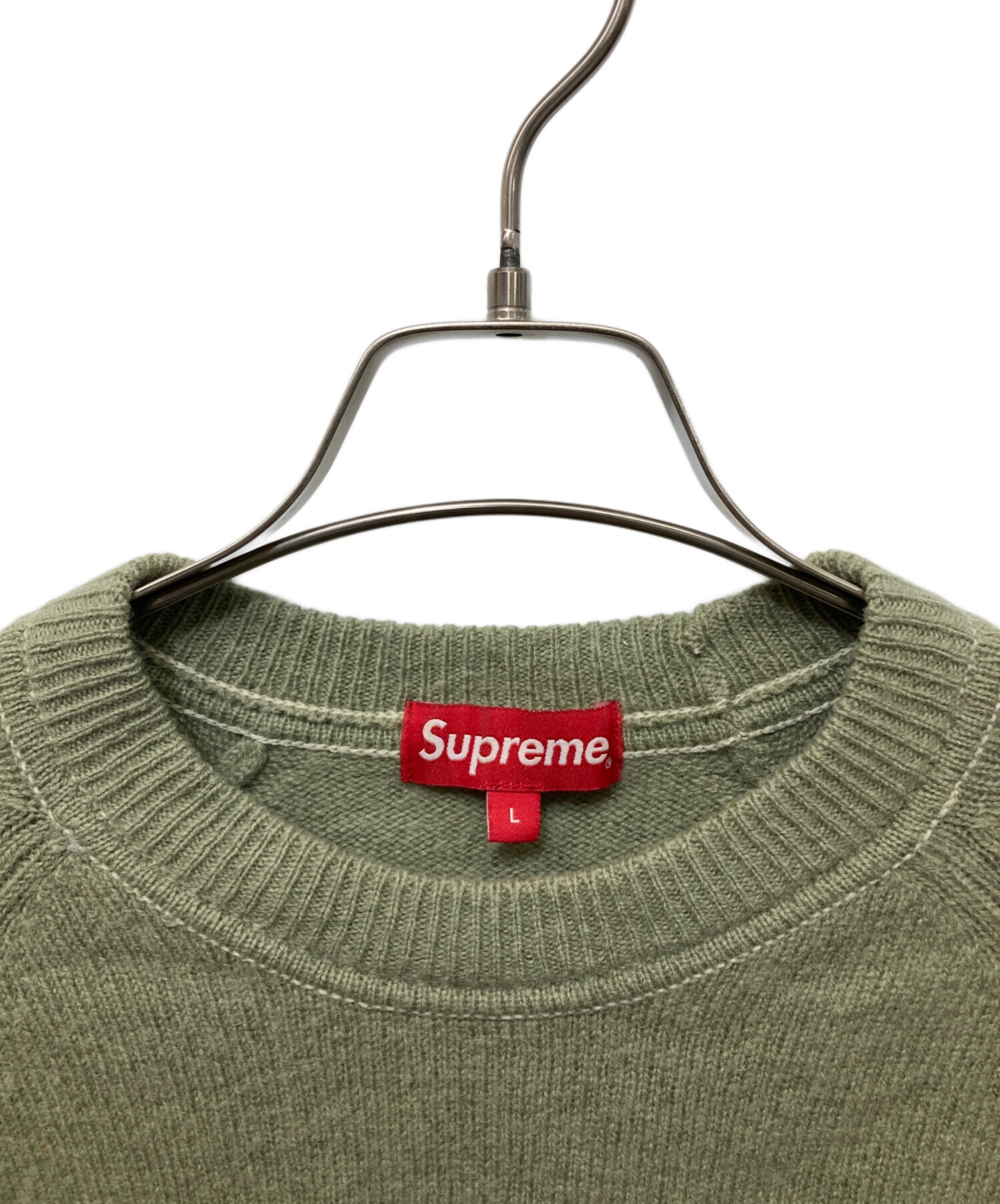 • SUPREME(シュプリーム)Supreme (シュプリーム) Stone Washed Sweater カーキ サイズ:Lの古着・服飾アイテム 各所毛羽立ち有