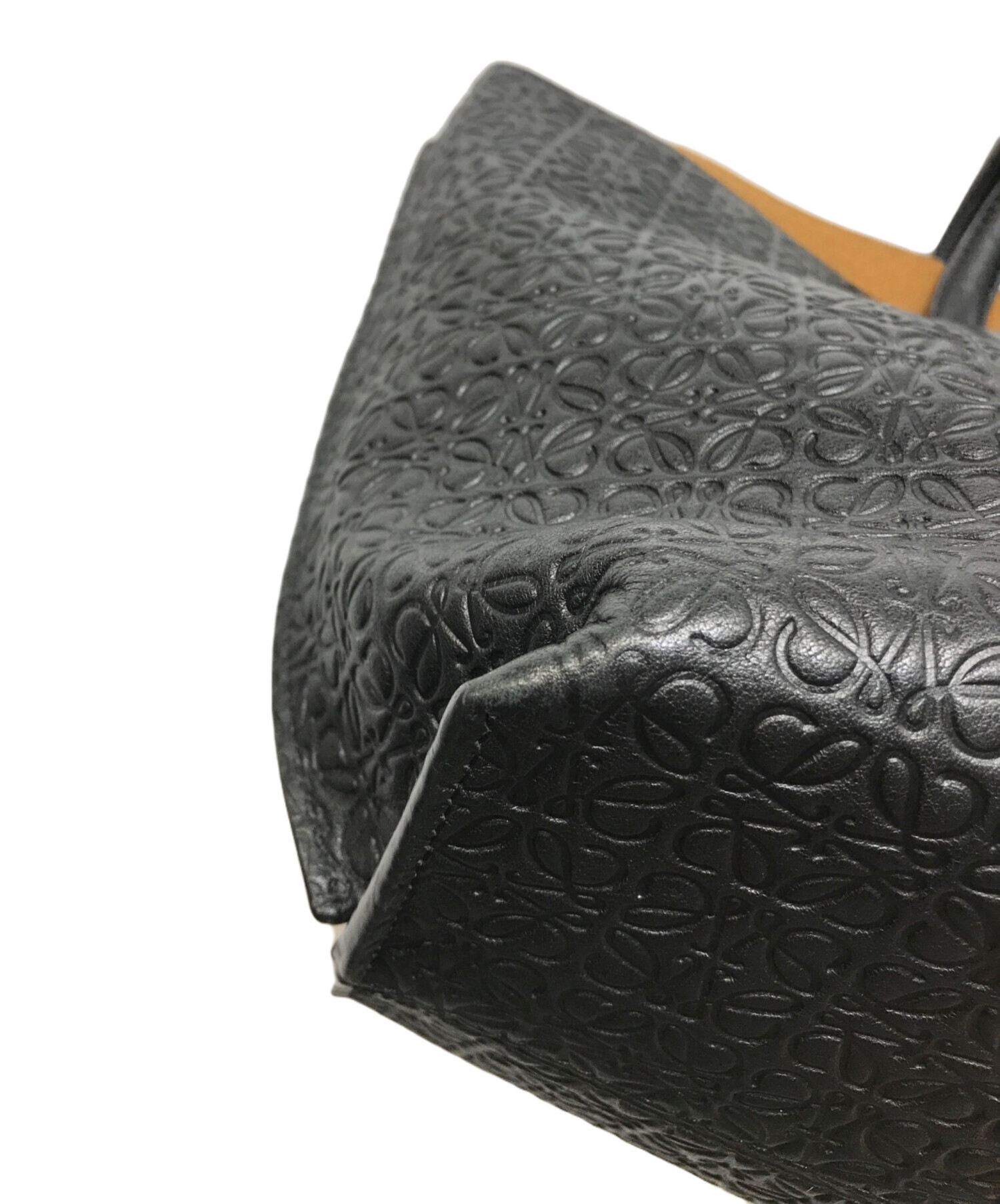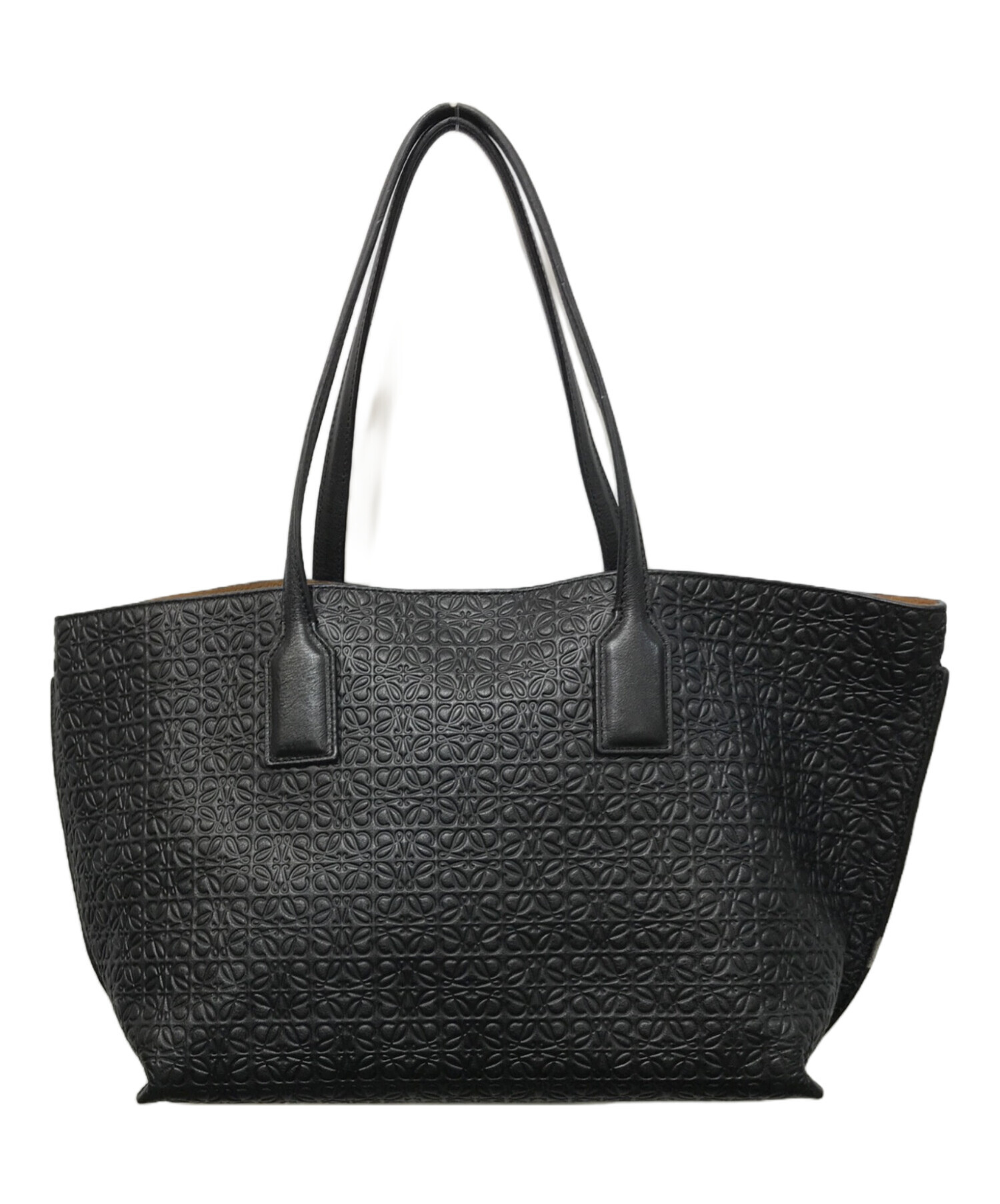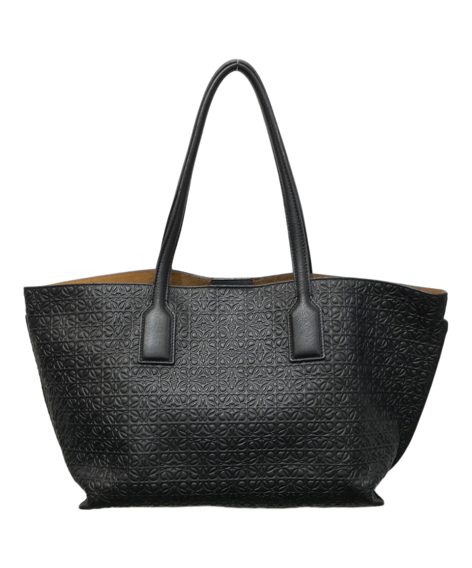 • LOEWE(ロエベ)LOEWE (ロエベ) リピートアナグラム Tショッパー トートバッグ ブラックの古着・服飾アイテム ハンドルキズ有