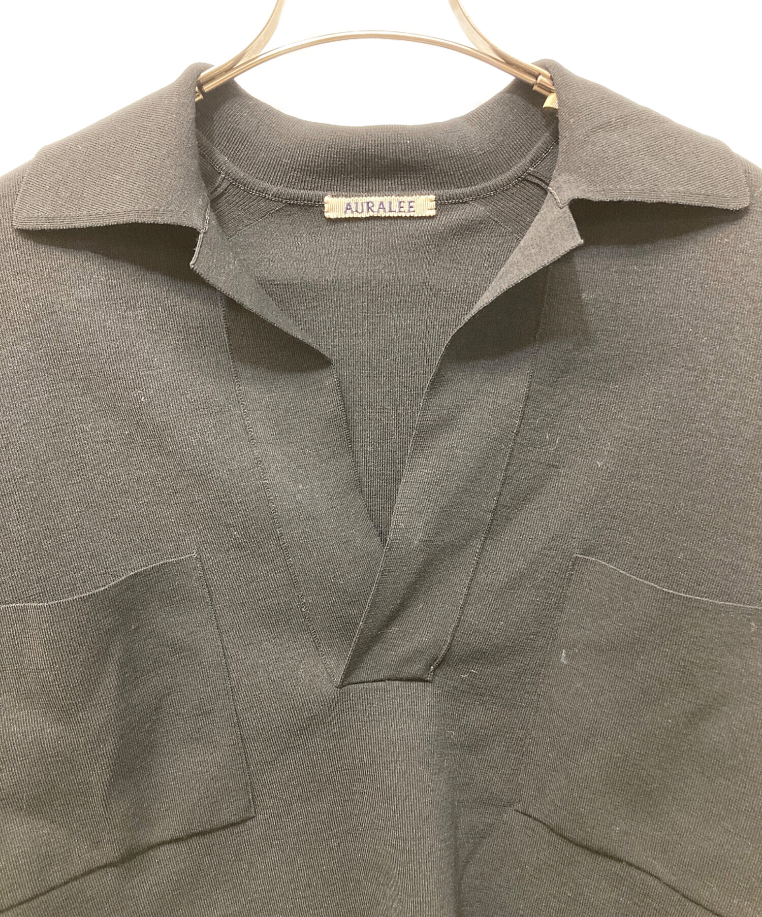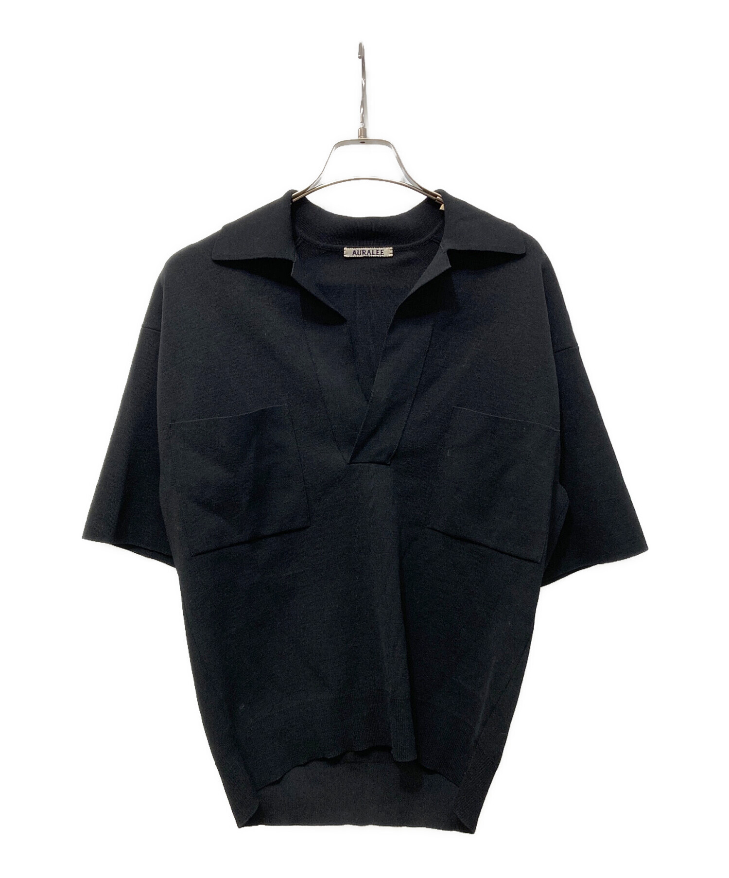• AURALEE(オーラリー)AURALEE (オーラリー) WOOL RECYCLE POLYESTER HIGH GAUGE RIB KNIT SKIPPER 半袖ニット ブラックの古着・服飾アイテム 袖裏ヨゴレ有