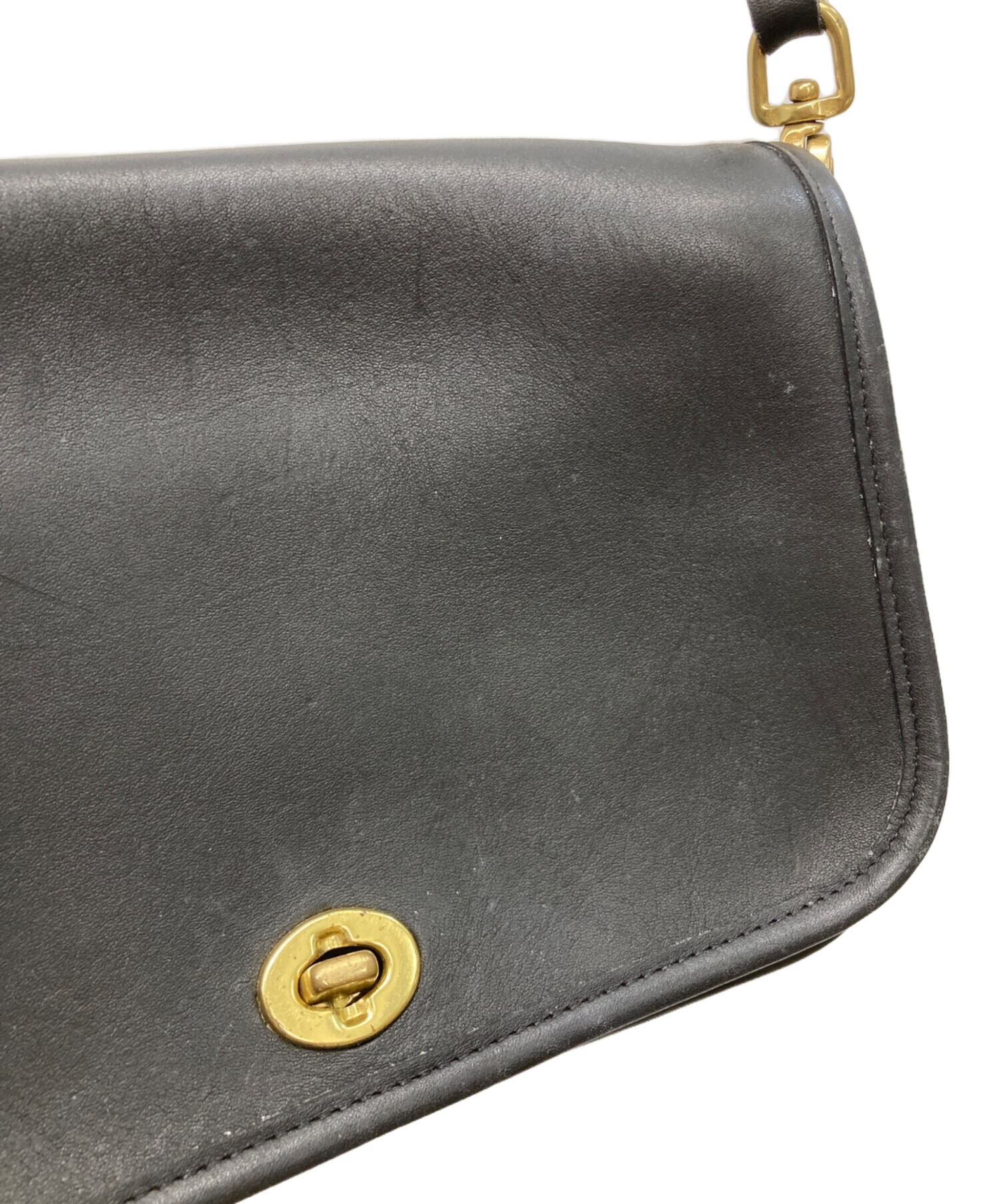 • COACH(コーチ)COACH (コーチ) ターンロックレザーショルダーバッグ ブラックの古着・服飾アイテム ヨゴレ・毛羽立ち有