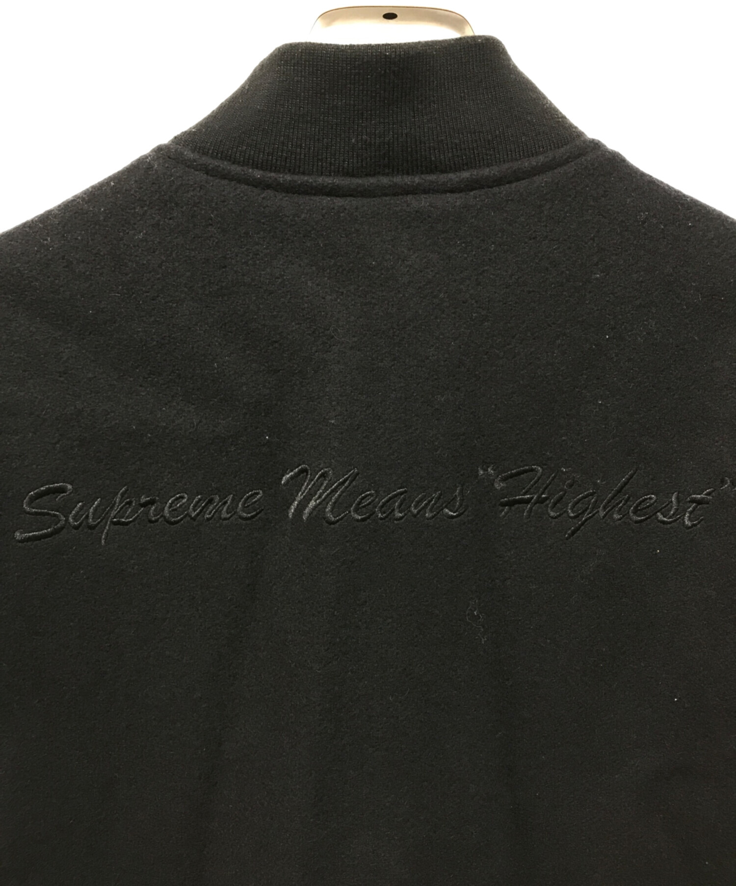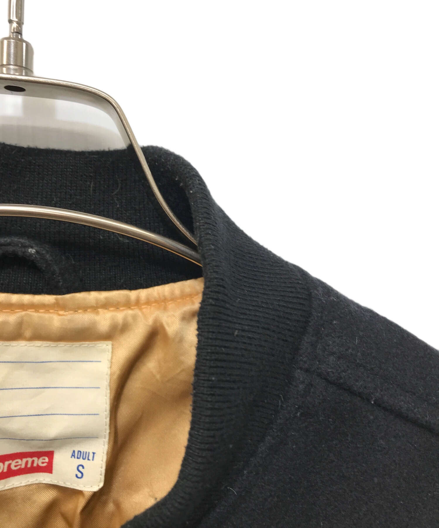 • SUPREME(シュプリーム)SUPREME (シュプリーム) Old English Zip Varsity Jacket ブラック サイズ:Sの古着・服飾アイテム 各所袖口ヨゴレ・毛羽立ち有