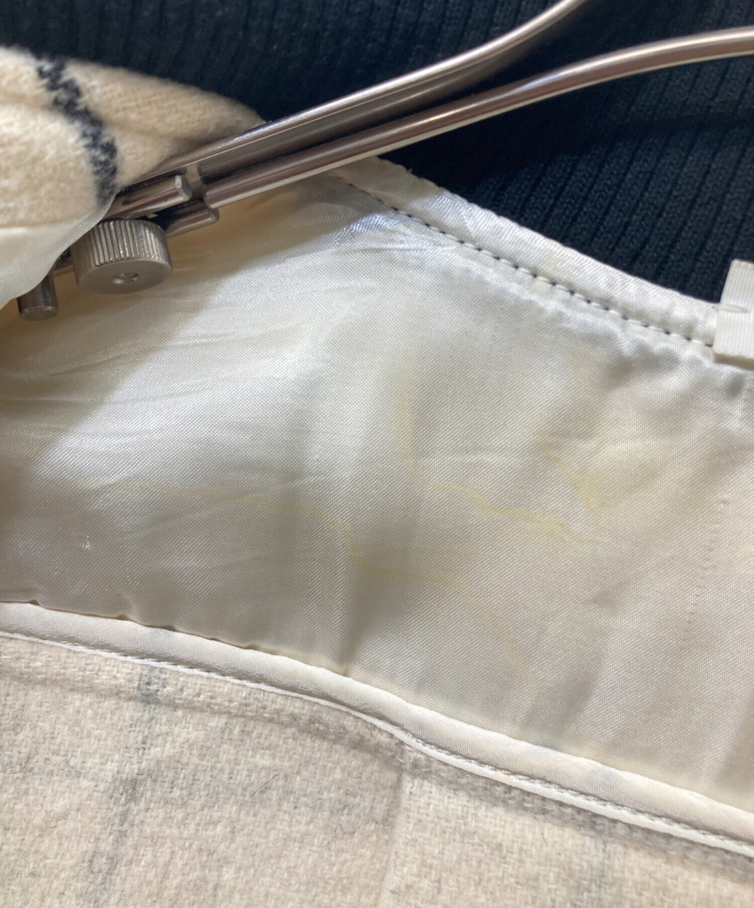 目立つシミや汚れ、におい等がある場合は商品画像や説明文にて極力表記させていただいておりますが、中古品という商品の特性上、全ての瑕疵や不備、洋服直し箇所を撮影・記載をすることは難しくなっております。また、ほとんどのアイテムは店頭と併売しておりますため、出品掲載時からコンディションが変動している場合もございます。あらかじめご了承くださいませ。