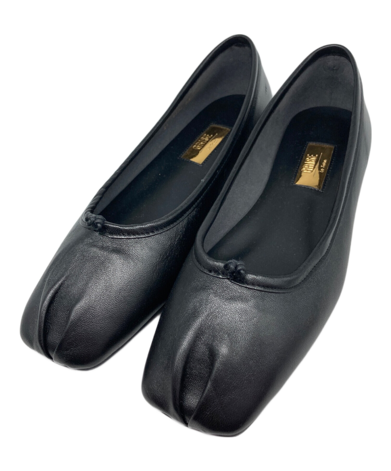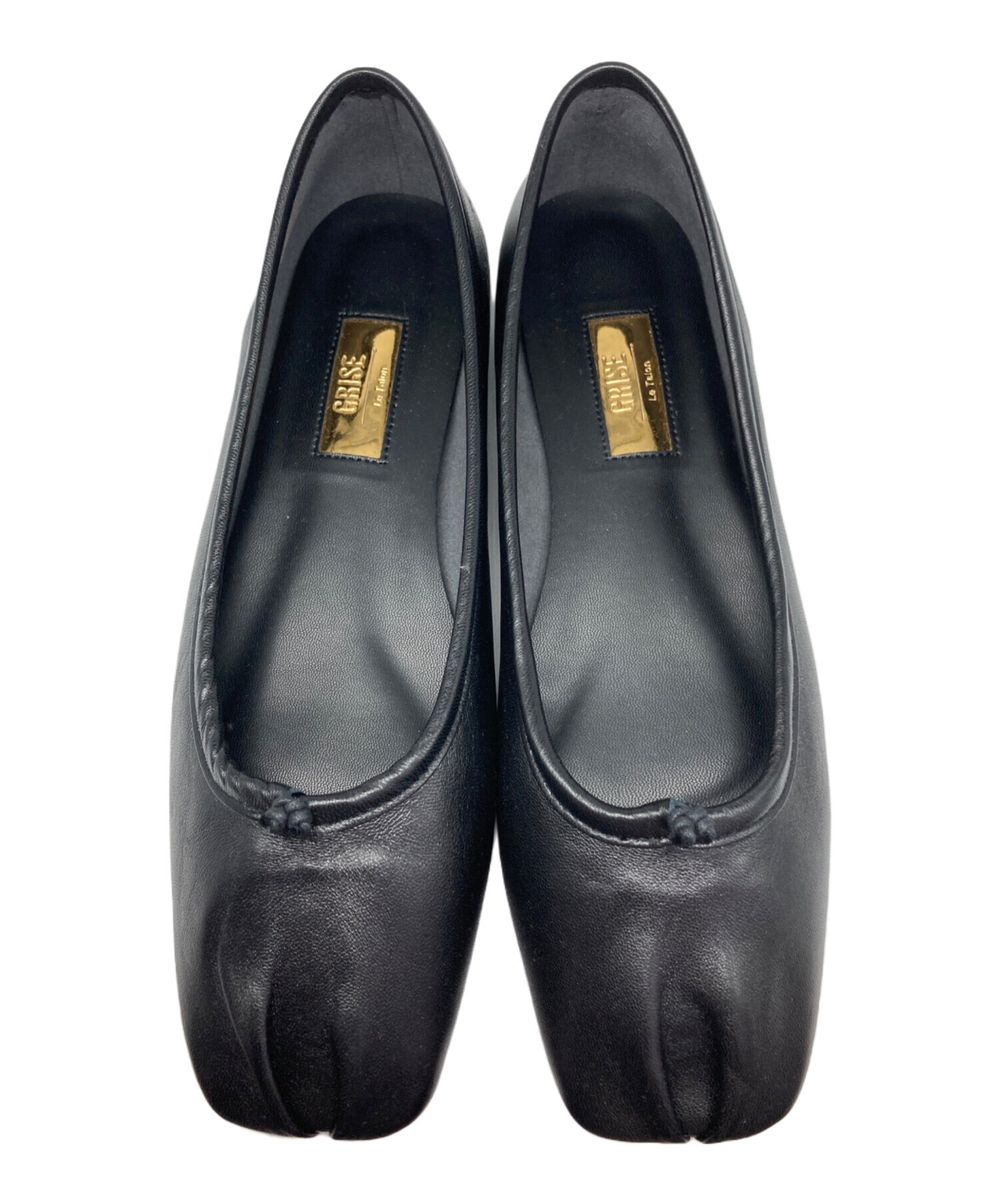 GRISEレザースクエアプリーツフラット