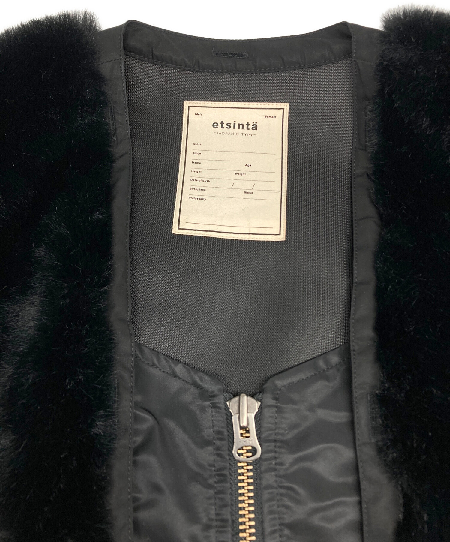 | 素材 | 身頃ファー部分: ポリエステル 100% 袖・前中心部分: ナイロン 100% 脇・衿ぐり部分: コットン 100% 袖口リブ部分: ポリエステル 97% ポリウレタン 3% 袖裏部分: ポリエステル 100% |