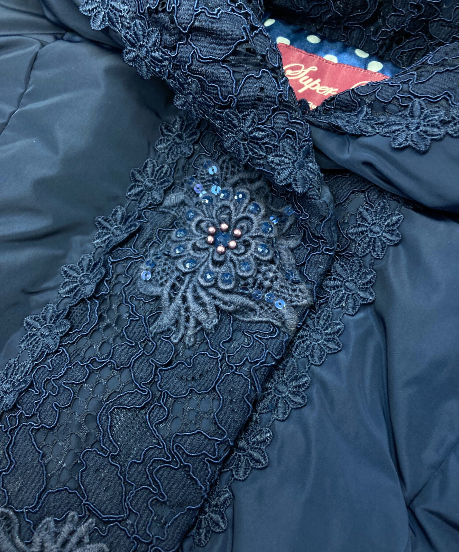 | 素材 | 表地: ポリエステル 100% レース: ナイロン 100% 詰物: ダウン 90% フェザー 10% 裏地: ポリエステル 100% |