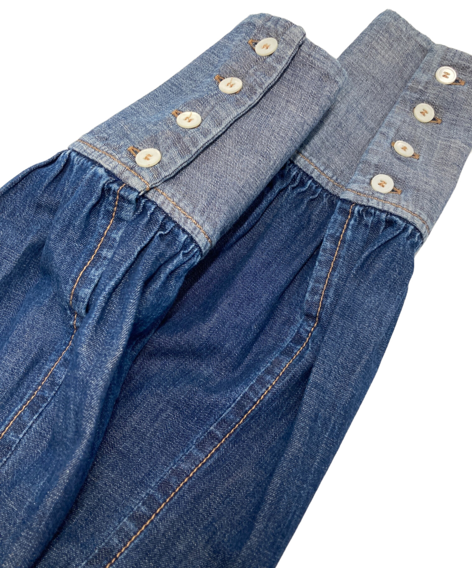 ダメージ加工デニムフリルワンピース