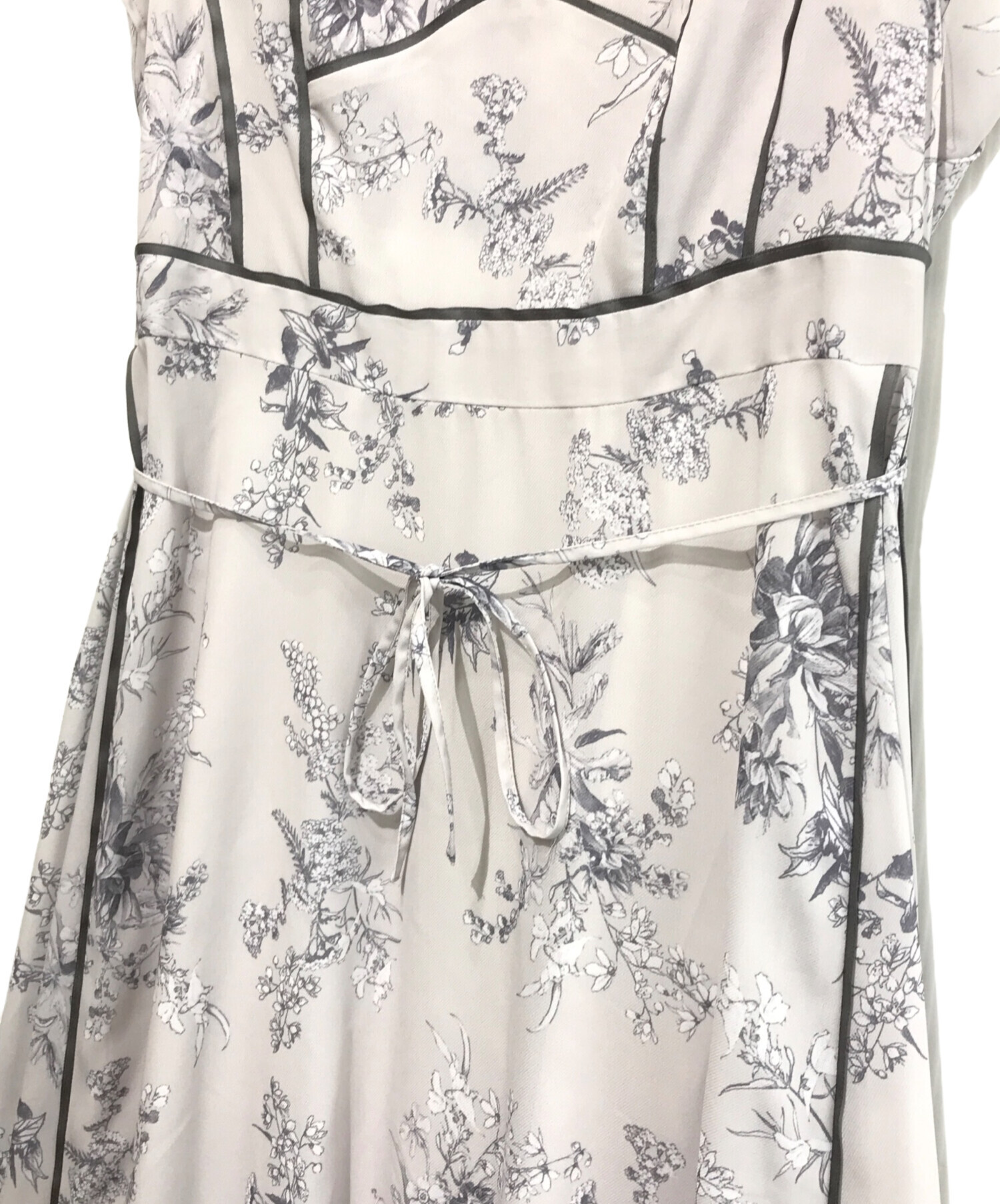 サテンパイピングプリントシフォンワンピース
