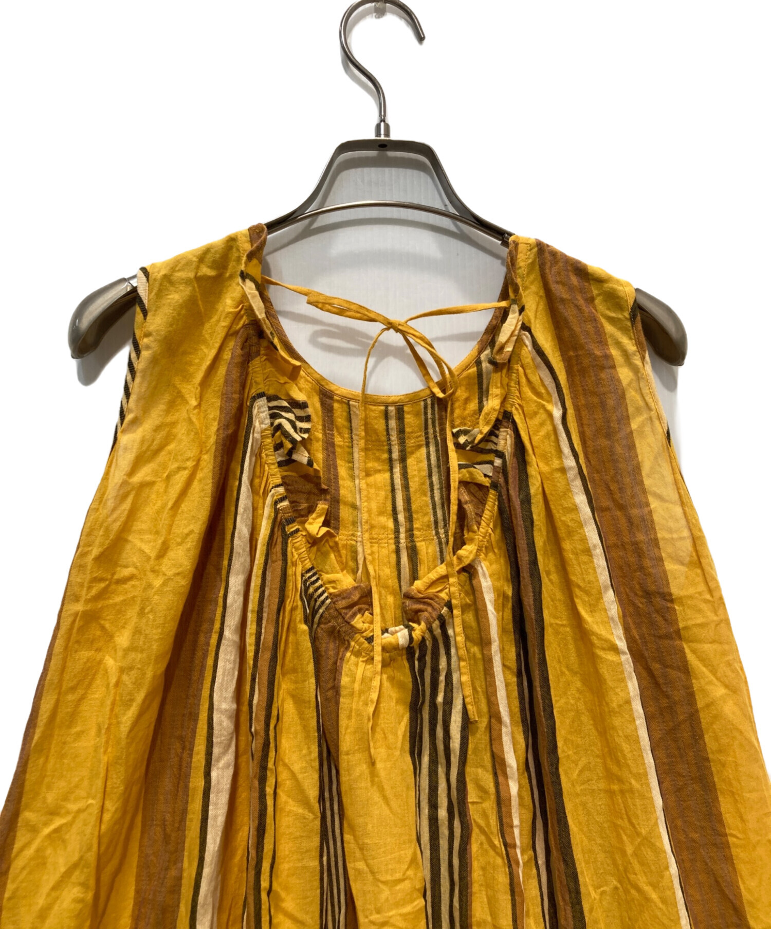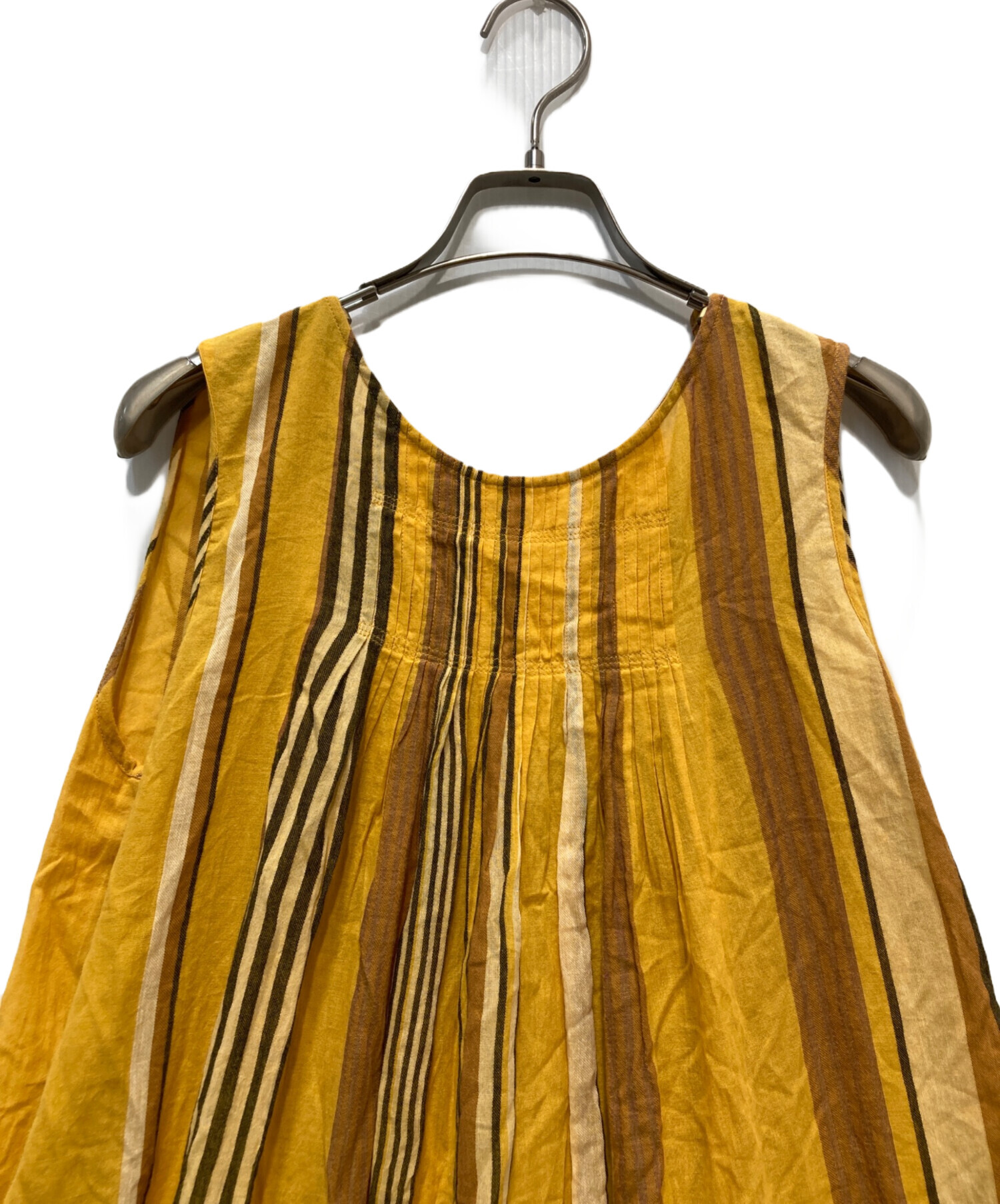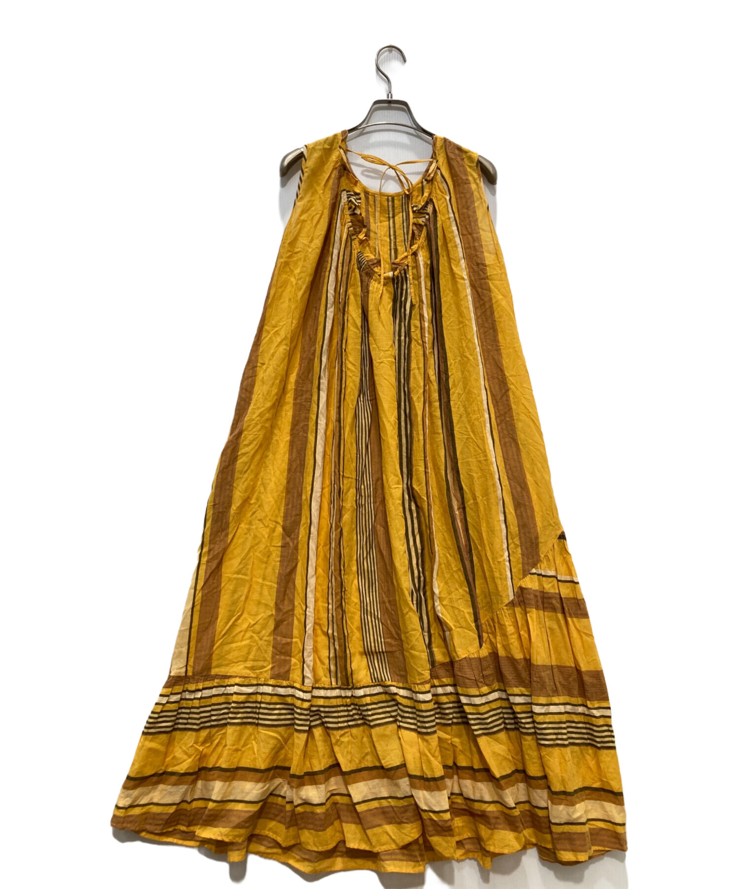 • ne quittez pas(ヌキテパ)ne quittez pas (ヌキテパ) ノースリーブストライプワンピース オレンジ サイズ:ーの古着・服飾アイテム シワ有