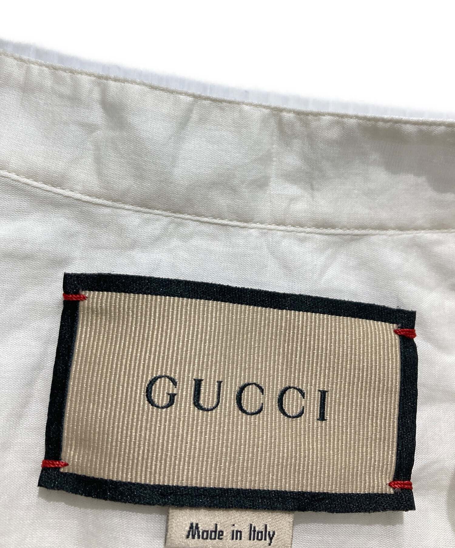• GUCCI(グッチ)GUCCI (グッチ) コットンチュニックヘンリーネック半袖シャツ ホワイト サイズ:46の古着・服飾アイテム 襟薄汚れ有