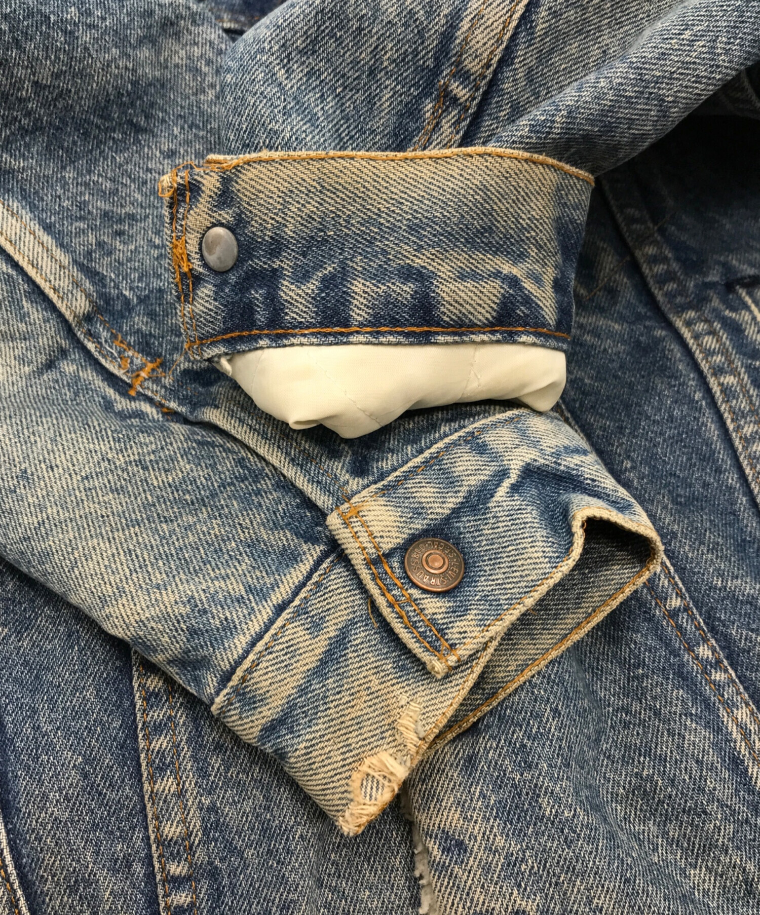 • LEVI'S(リーバイス)LEVI'S (リーバイス) Denim Boa Trucker Jacket インディゴ サイズ:38Rの古着・服飾アイテム 両袖裏地写真のようなダメージ・ホツレ各所に有