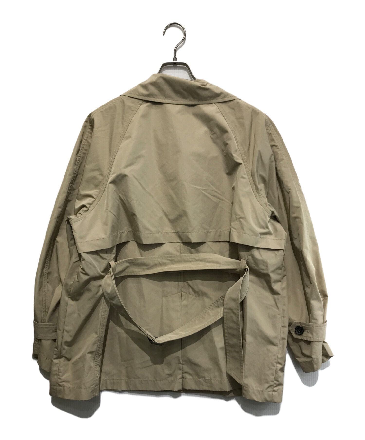 | スタッフコメント | 25年春モデルのショート丈トレンチコートです。ヒップが隠れるくらいのゆったりとしたシルエットで、オーバーサイズに作られたアイテムです。ベルトがセットでついているので、ウエストを絞ってお使いいただけます。少し光沢のある薄手の生地感です。キレイ目にもカジュアルにも着ていただける万能ジャケットです。 |