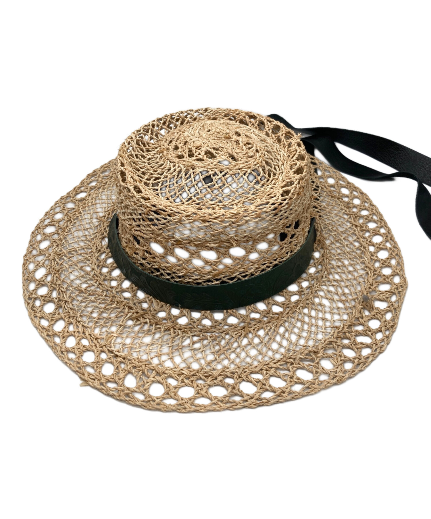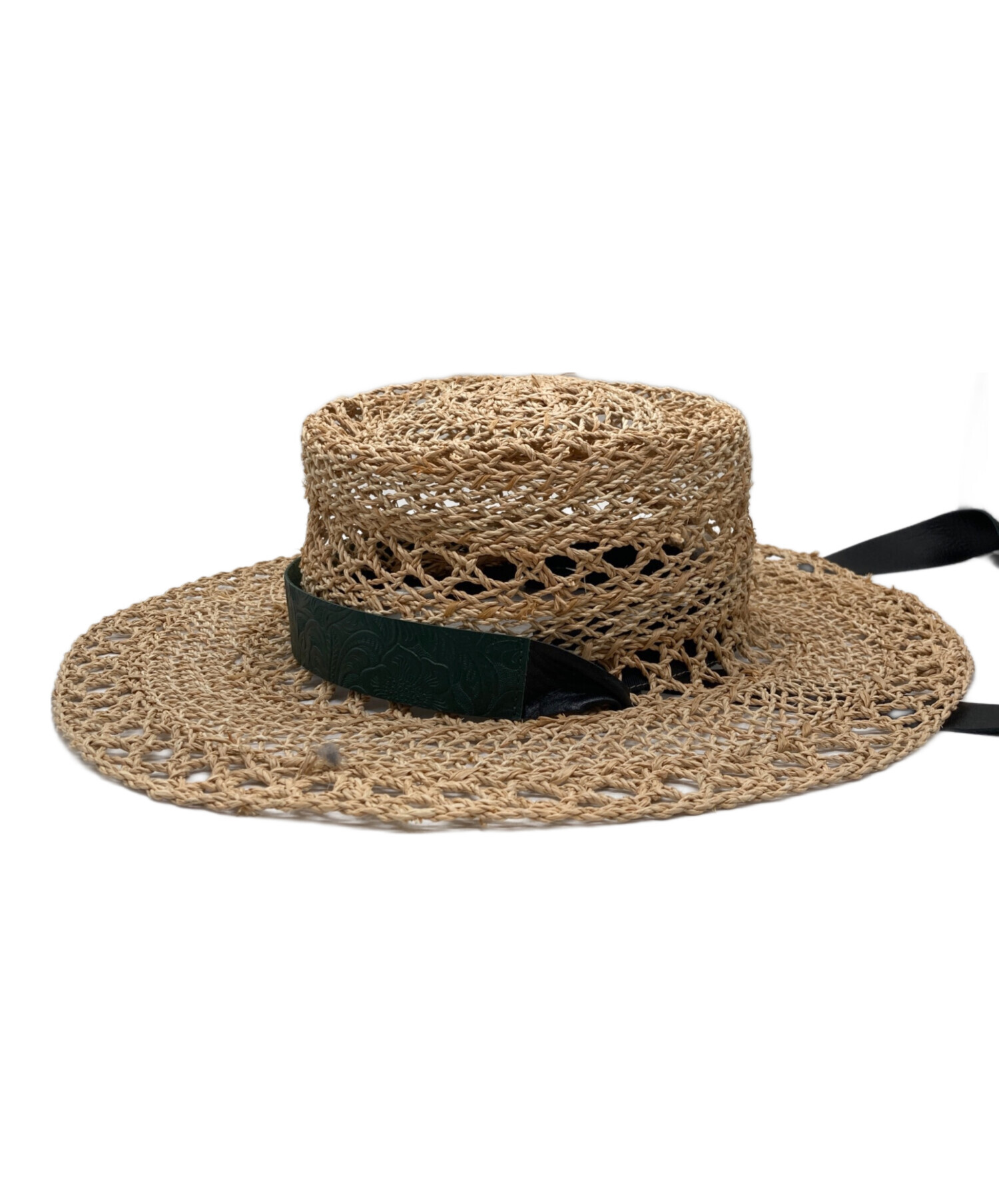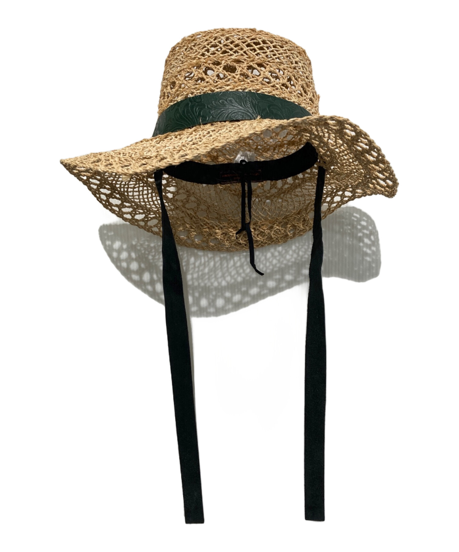 スタッフコメント フミエタナカの麦わら帽子です。レザーの部分が他のハットと差別化できる特徴的なアイテムです。