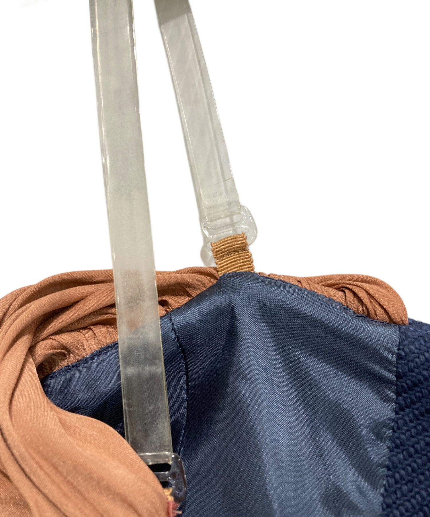 • FUMIE=TANAKA(フミエタナカ)FUMIE=TANAKA (フミエタナカ) ギャザーリボンビスチェ オレンジ×ネイビー サイズ:1の古着・服飾アイテム ヨゴレ有