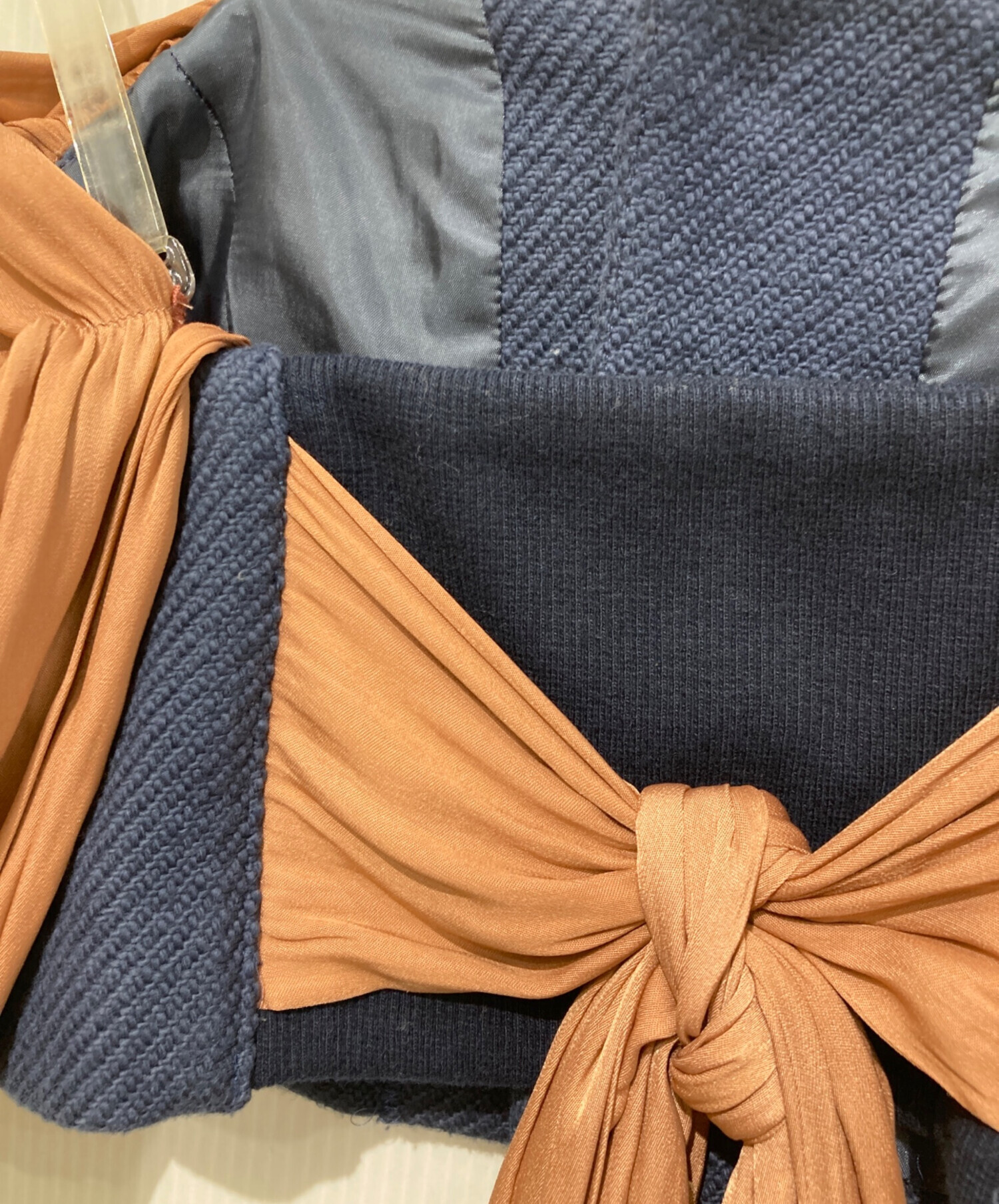 • FUMIE=TANAKA(フミエタナカ)FUMIE=TANAKA (フミエタナカ) ギャザーリボンビスチェ オレンジ×ネイビー サイズ:1の古着・服飾アイテム ツレ有