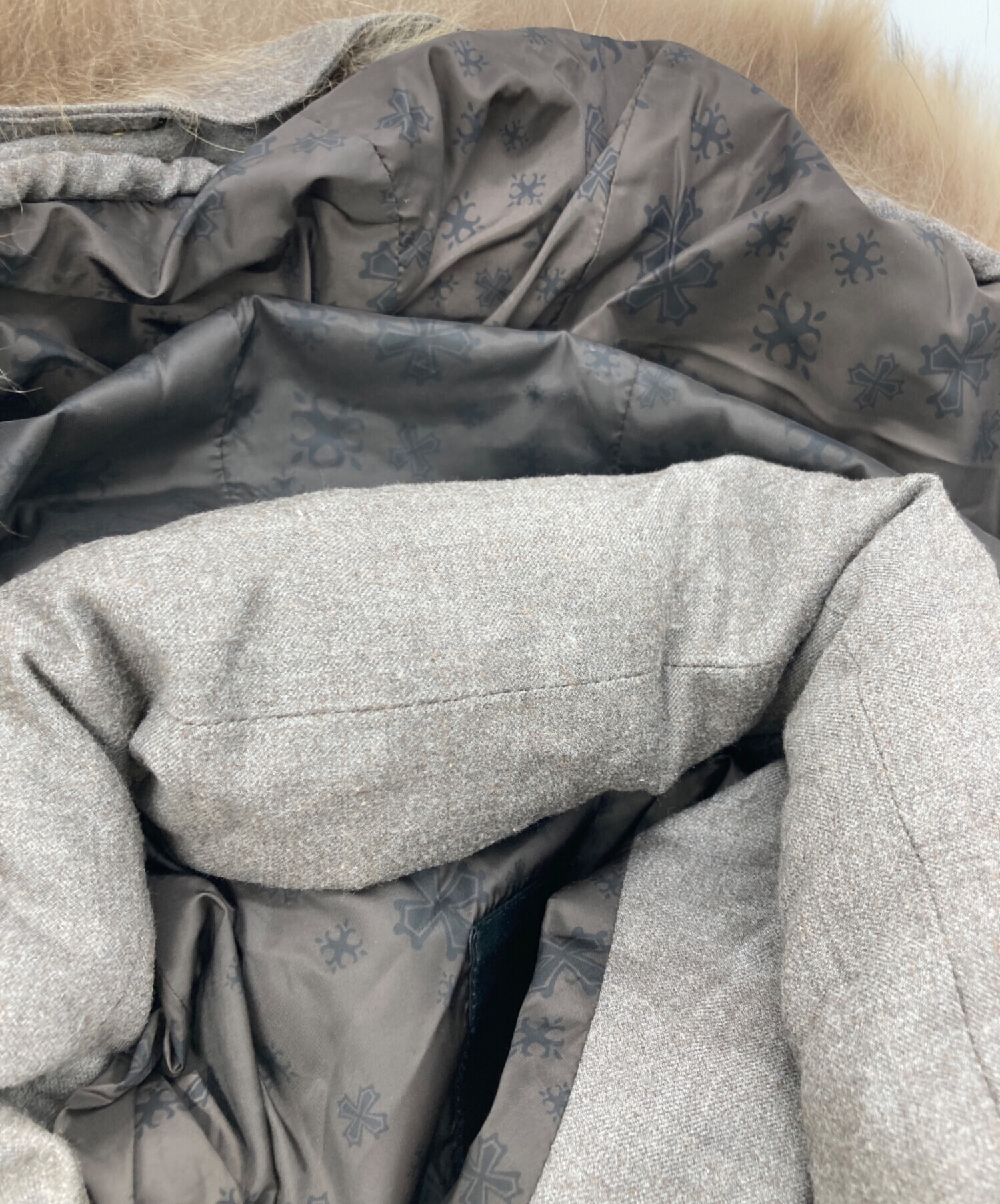 | 素材 | 表地 ウール 95% シルク 5% 中綿 ダウン 90% フェザー 10% 裏地 ナイロン 100% |