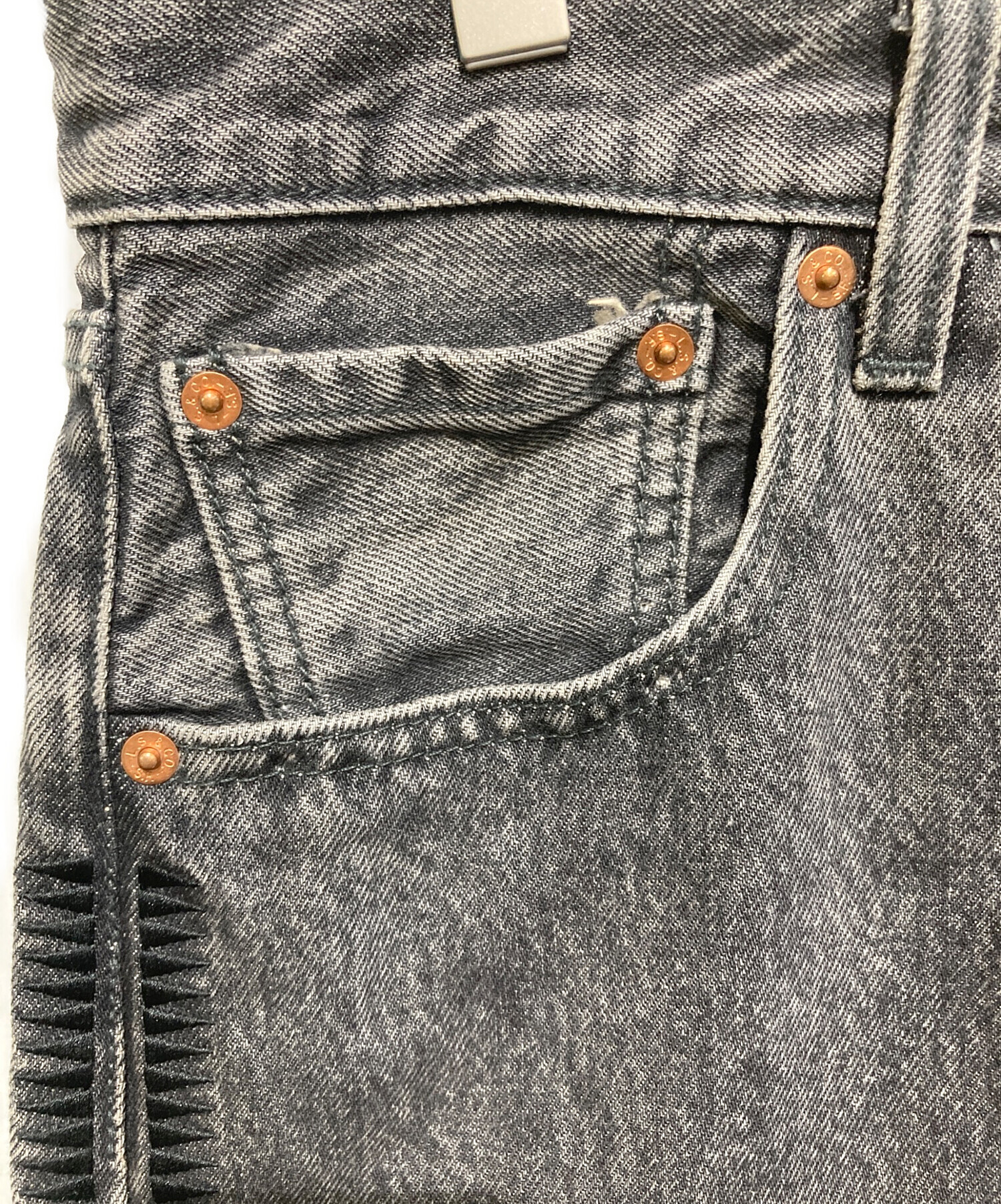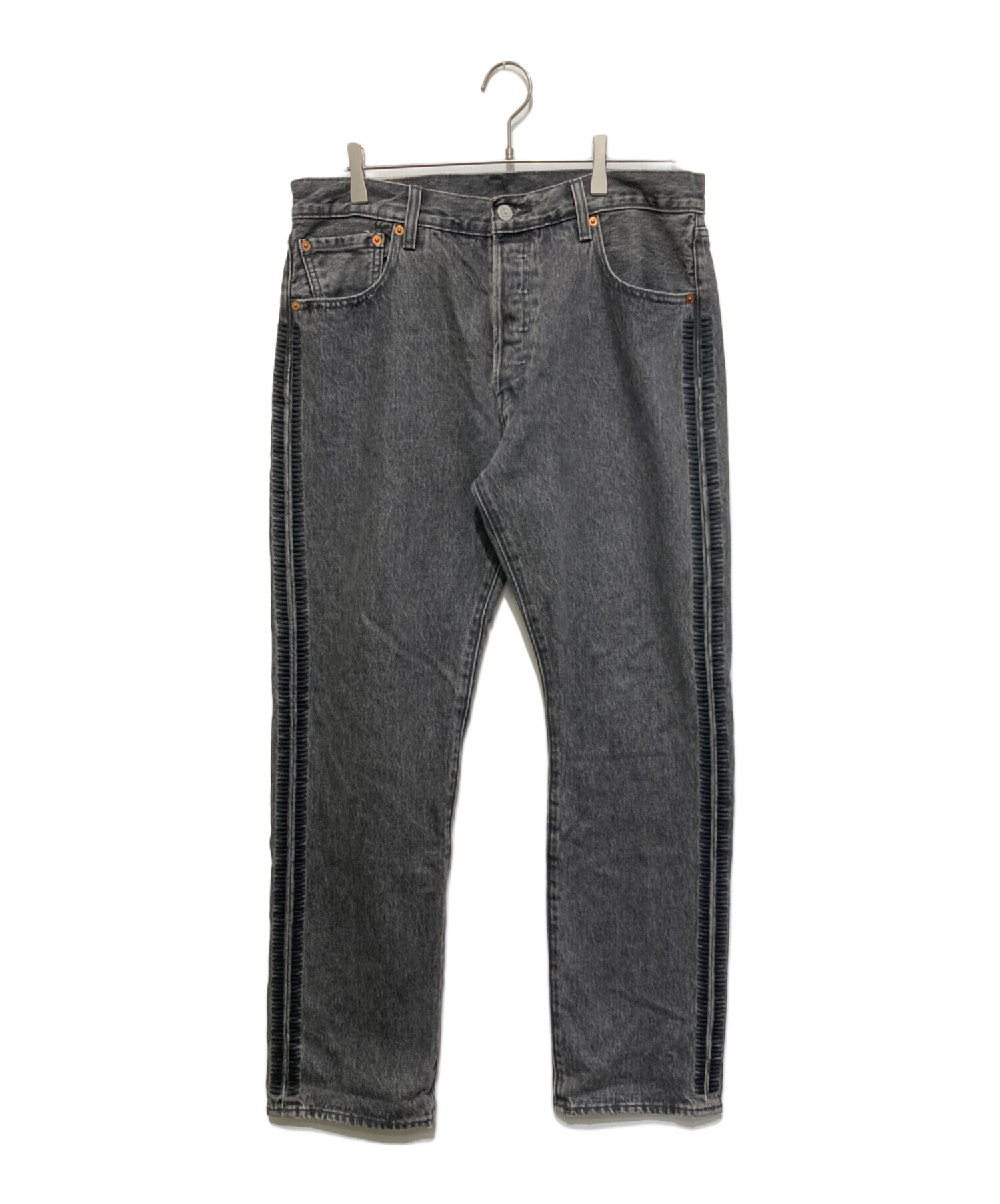 | スタッフコメント | LEVI'S(リーバイス)とUNDERCOVER(アンダーカバー)のデニムパンツです。黒のシンプルなデザイン、501のストレートシルエット、ボタンフライといったデザインで、アメカジファッションに適切なデニムパンツです。 |