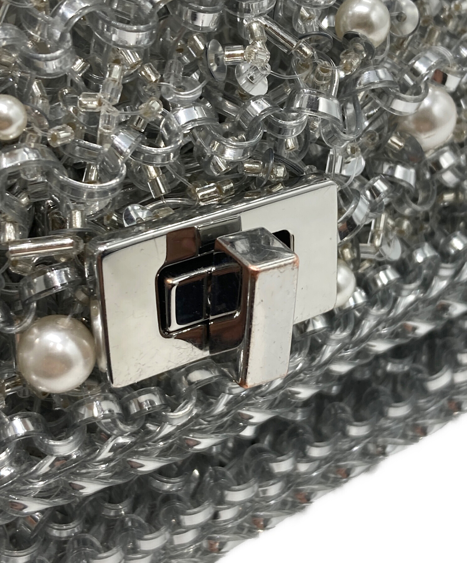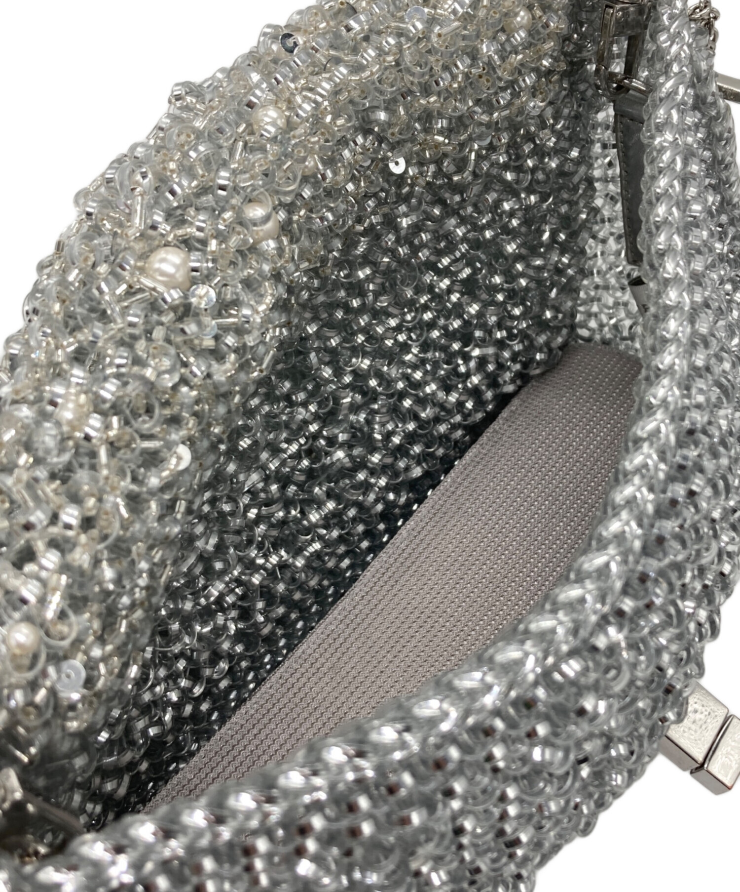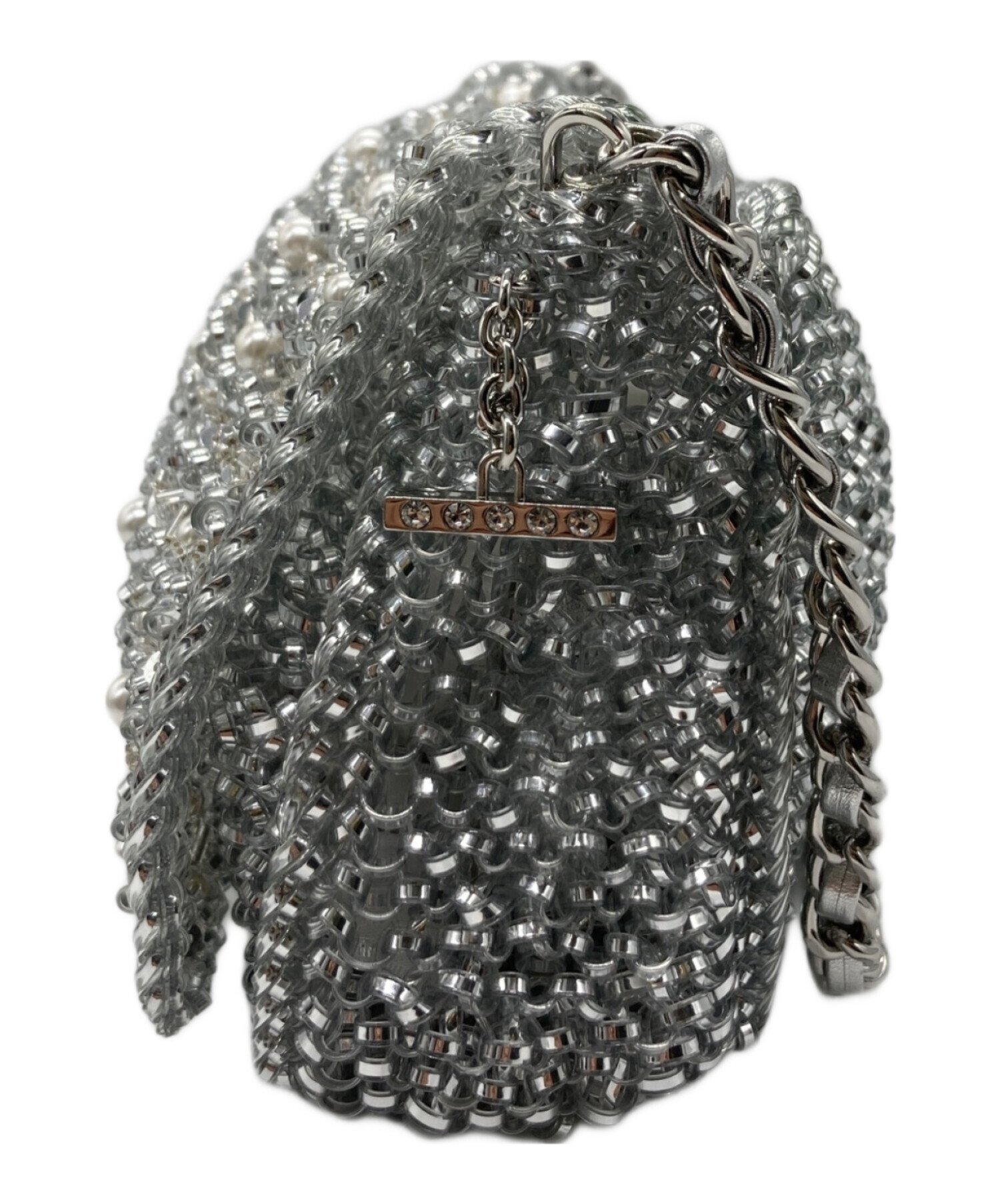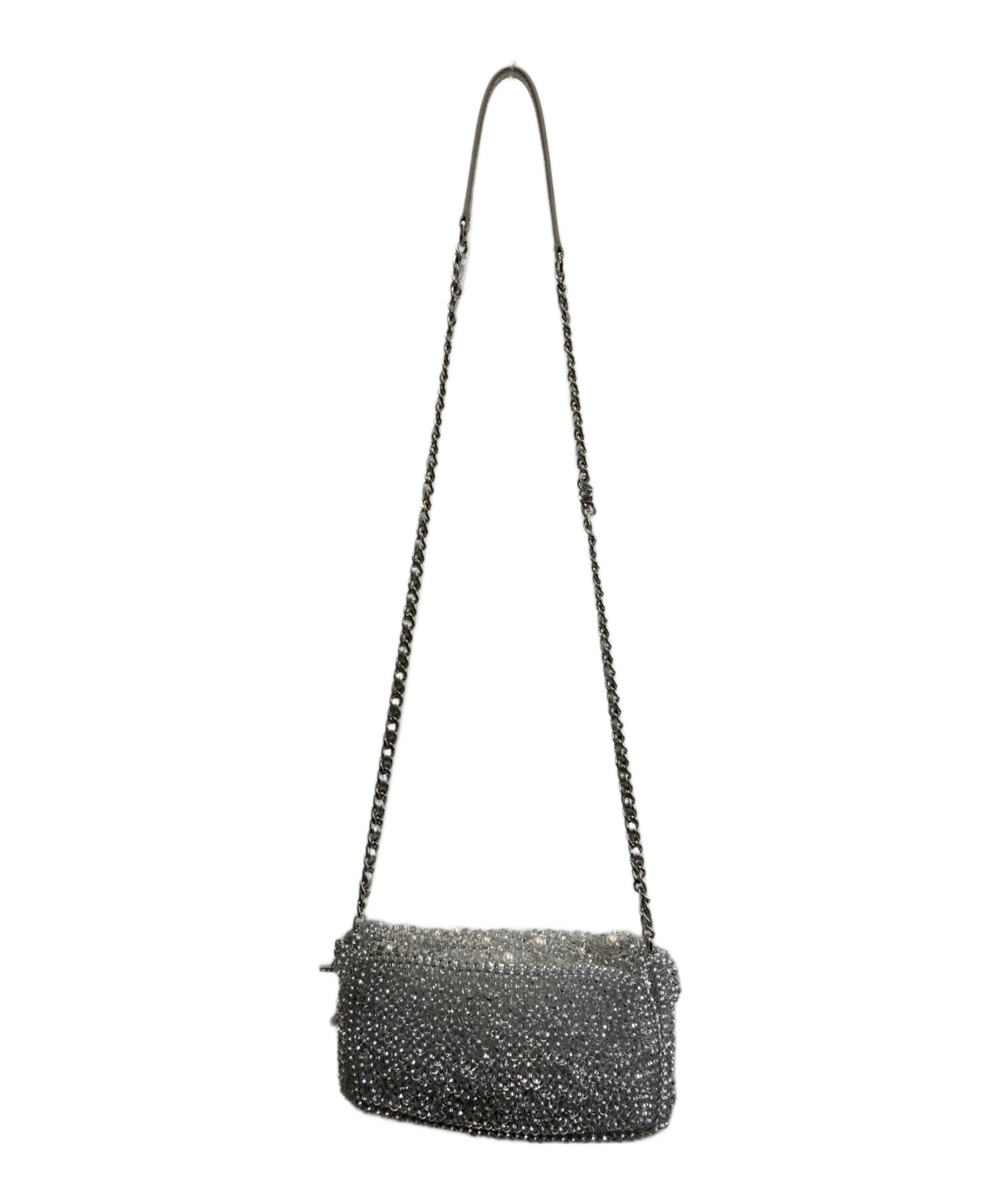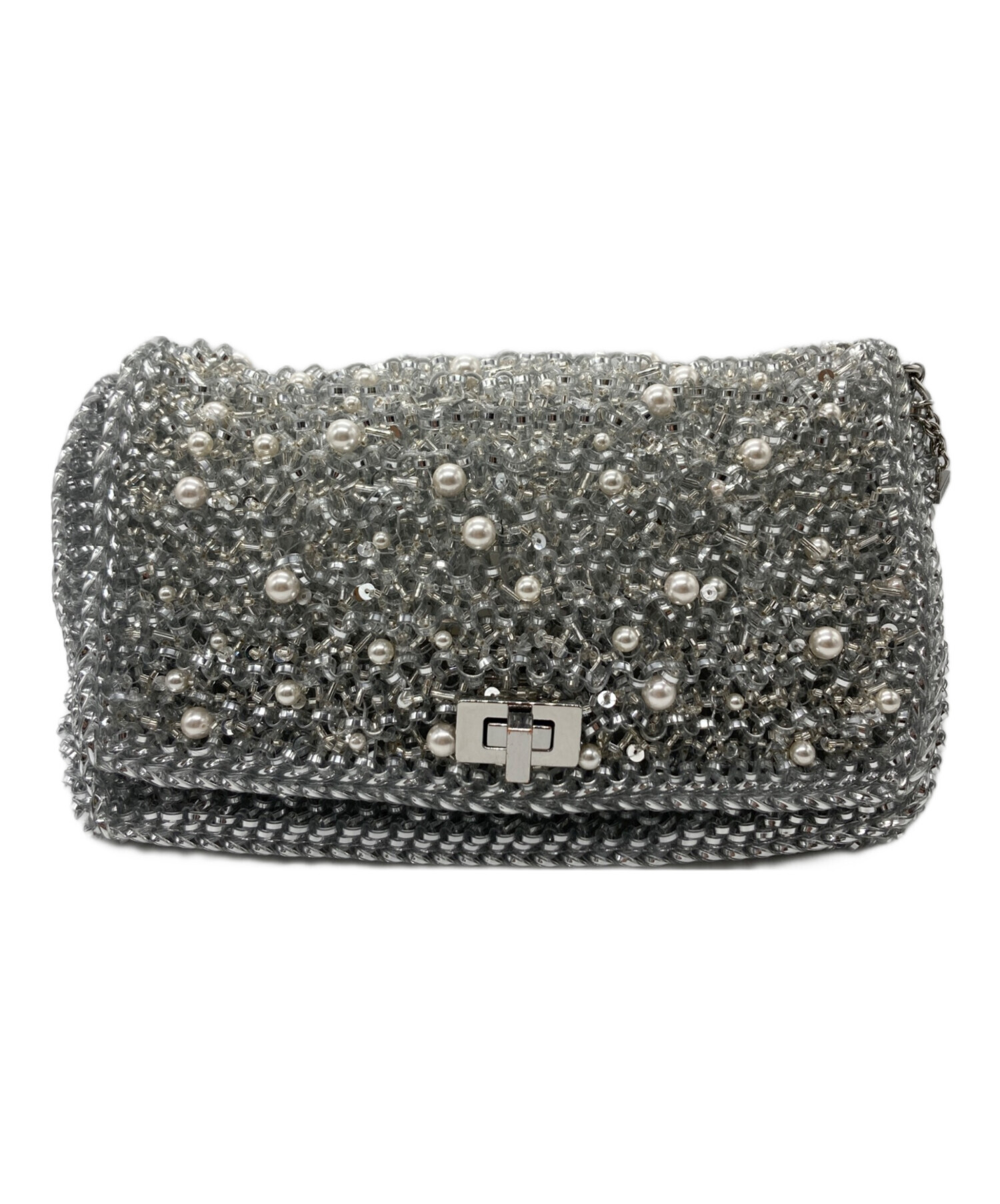 | スタッフコメント | アンテプリマのペルラグリッターというラインのショルダーバックになります。ケータイ、財布が入る容量です。全体がシルバーで統一されたデザインで、バック一つで個性を出せるアイテムになります。 |