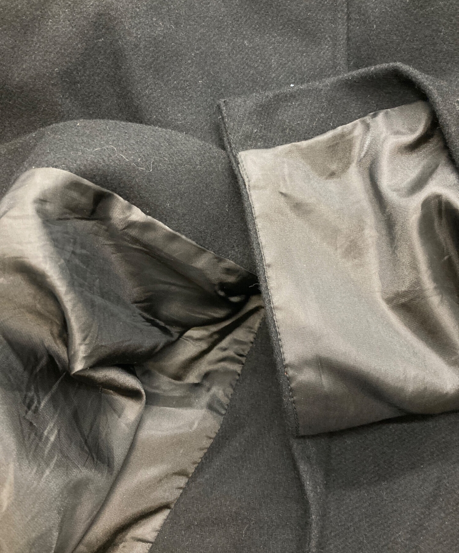 • LA MER MA MAISON(ラメルマメゾン)LA MER MA MAISON (ラメルマメゾン) SINGLE BALMACAAN COAT ブラック サイズ:Lの古着・服飾アイテム ヨゴレ・各所毛羽立ち