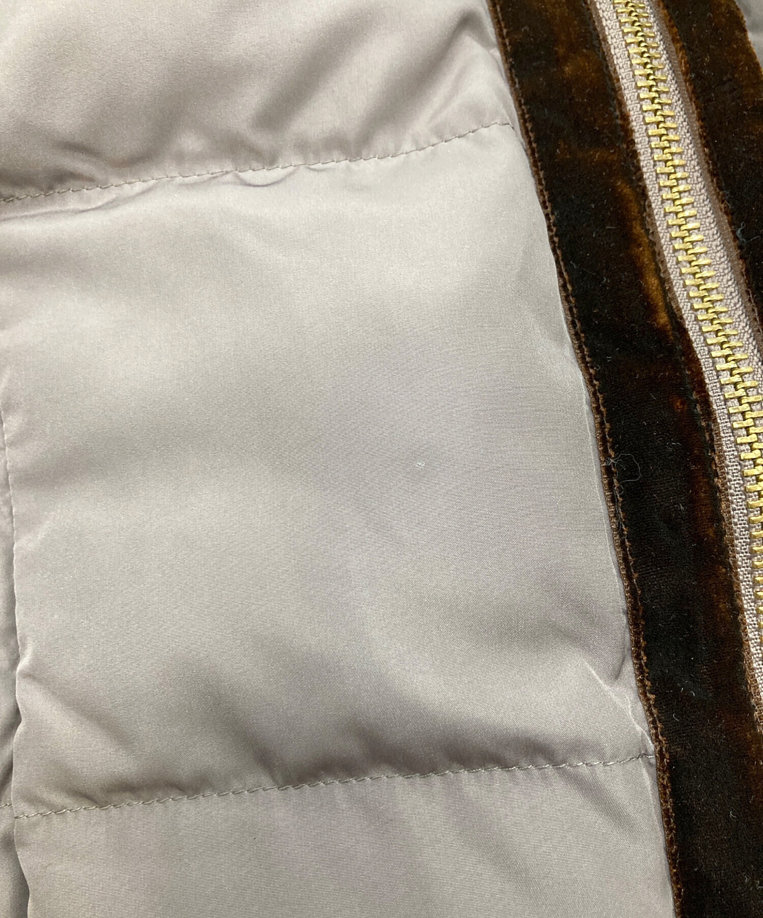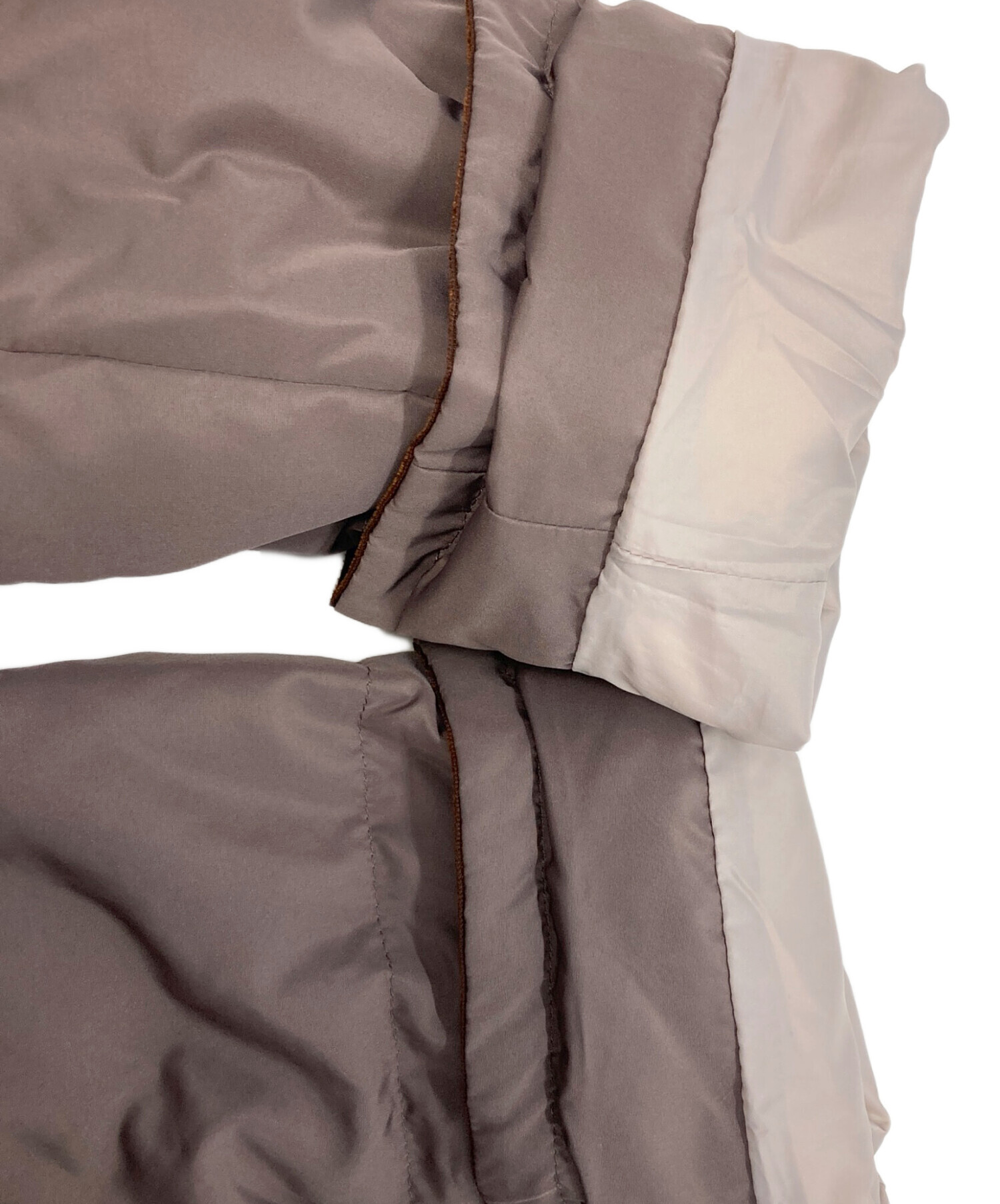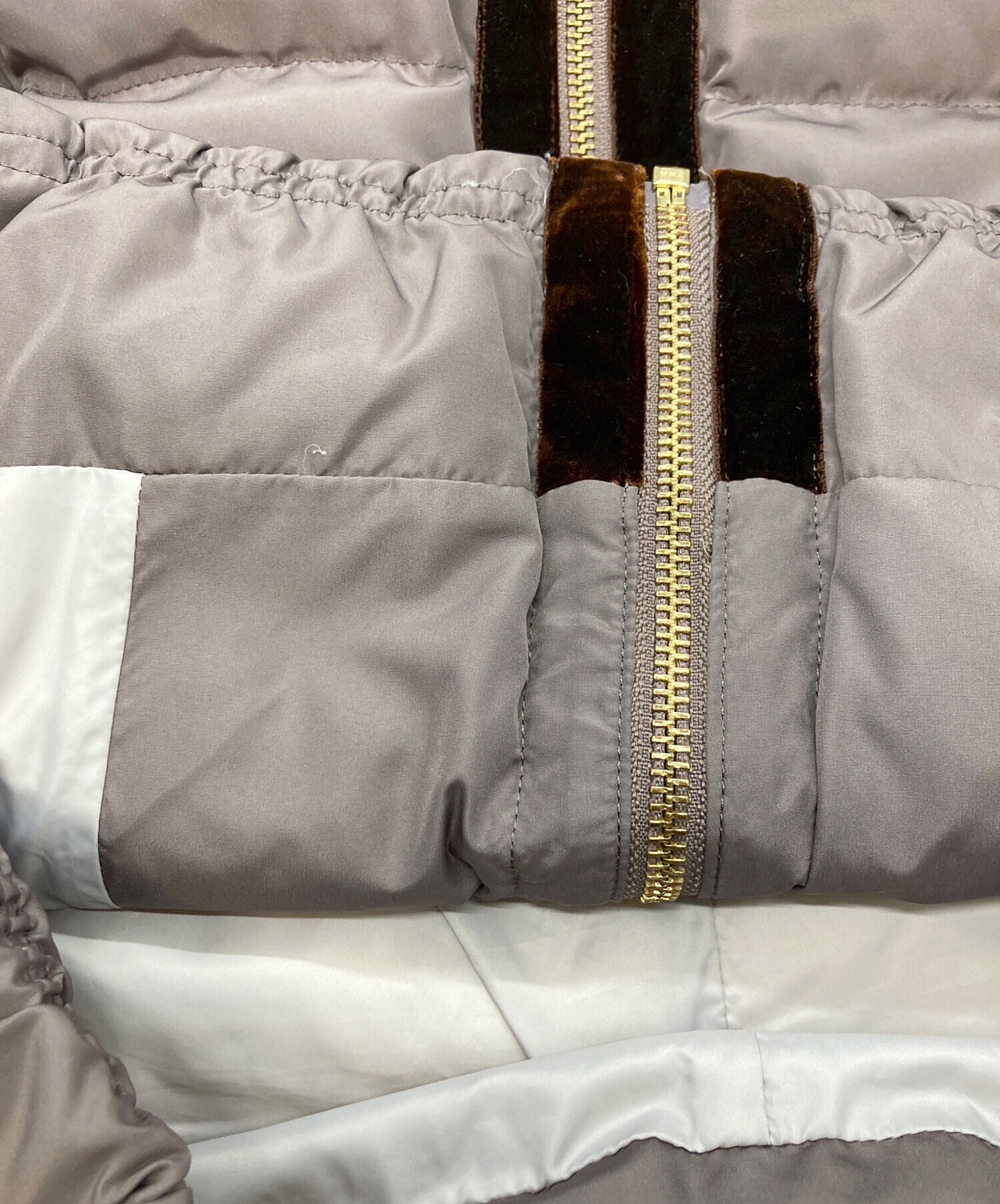 | 素材 | 表地:ポリエステル100% テープ部分:レーヨン67%、ナイロン33% 中綿:ダウン90%、フェザー10% 裏地:ポリエステル |