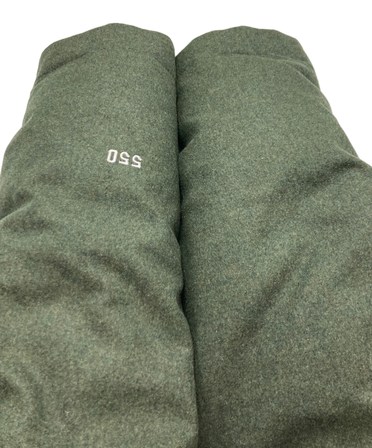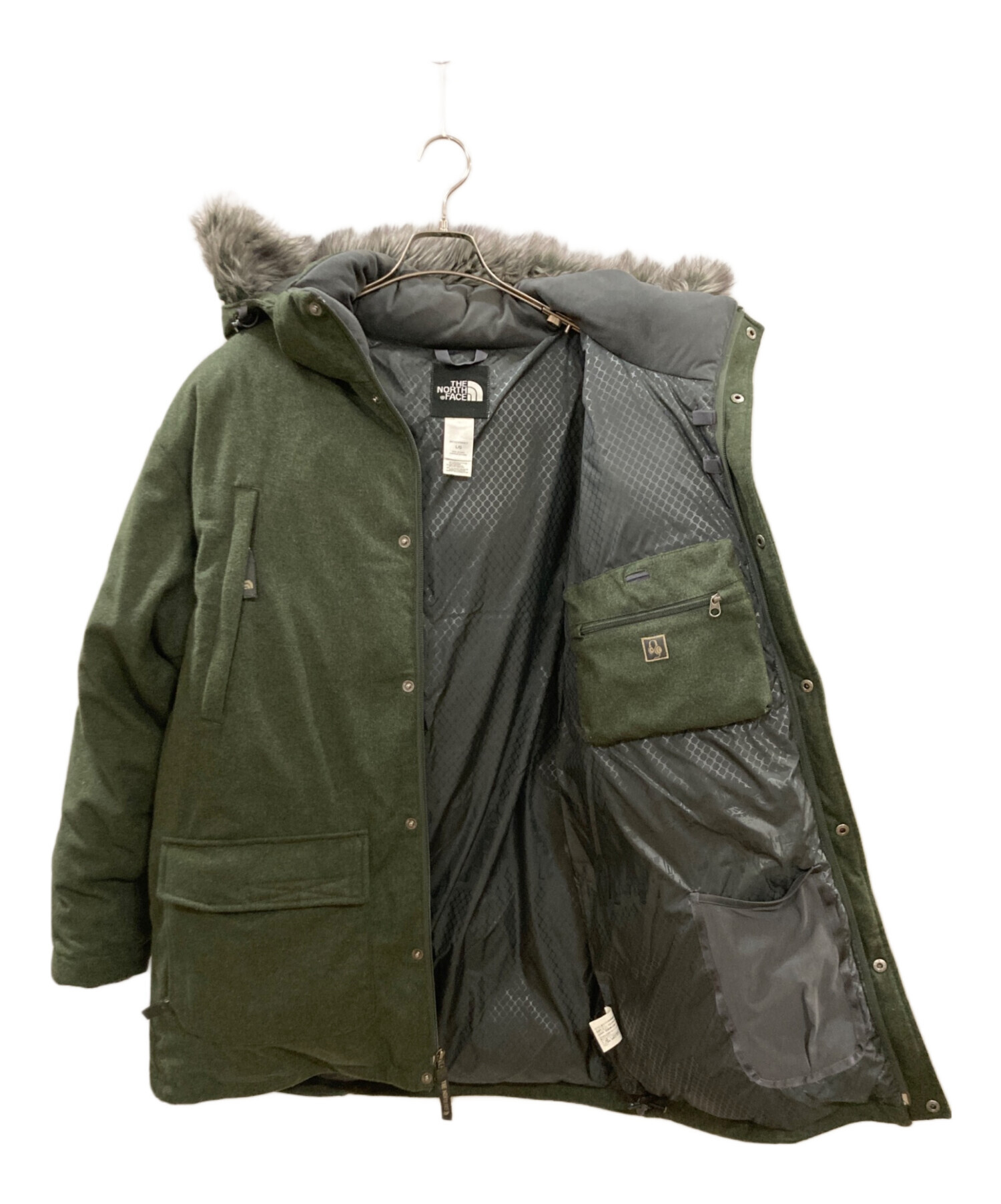 | 素材 | 表地:ウール67%、ナイロン17%、ポリエステル16% 裏地:ポリエステル100% 中綿:ダウン80%、羽毛20% ファー:アクリル80%、ポリエステル20% |