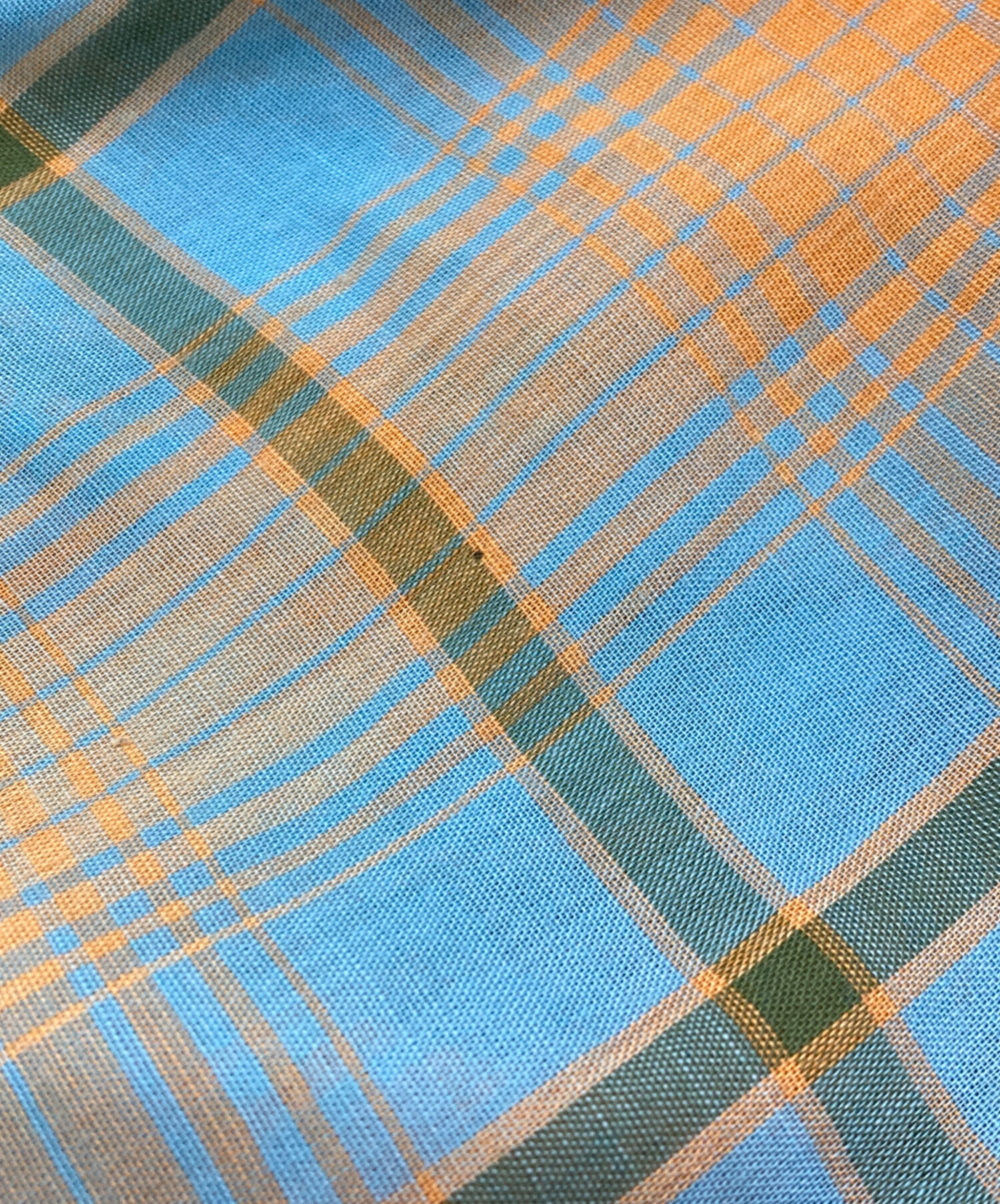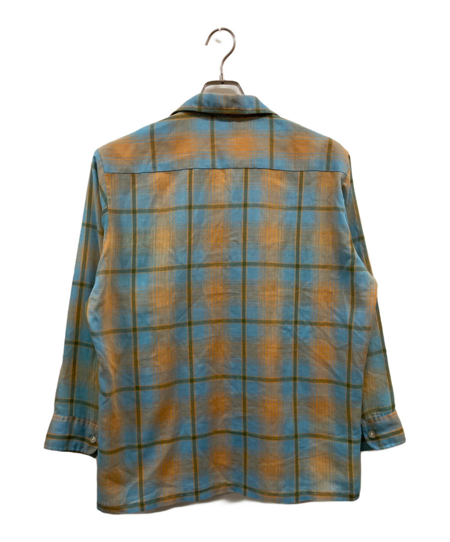 • PENNEYS TOWN CRAFT(ペニーズ タウンクラフト)PENNEYS TOWN CRAFT (ペニーズ タウンクラフト) 60~70’sオープンカラーチェックシャツ/ペニーズ タウンクラフト ブルー×オレンジ サイズ:Mの古着・服飾アイテム 破れ・ホツレ