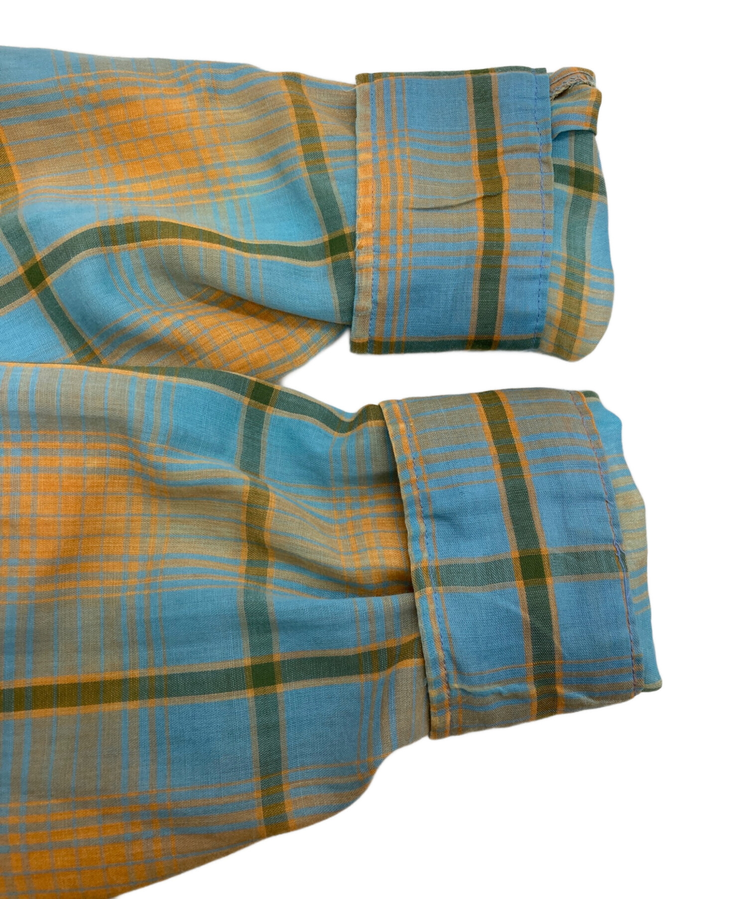 • PENNEYS TOWN CRAFT(ペニーズ タウンクラフト)PENNEYS TOWN CRAFT (ペニーズ タウンクラフト) 60~70’sオープンカラーチェックシャツ/ペニーズ タウンクラフト ブルー×オレンジ サイズ:Mの古着・服飾アイテム 袖口穴有