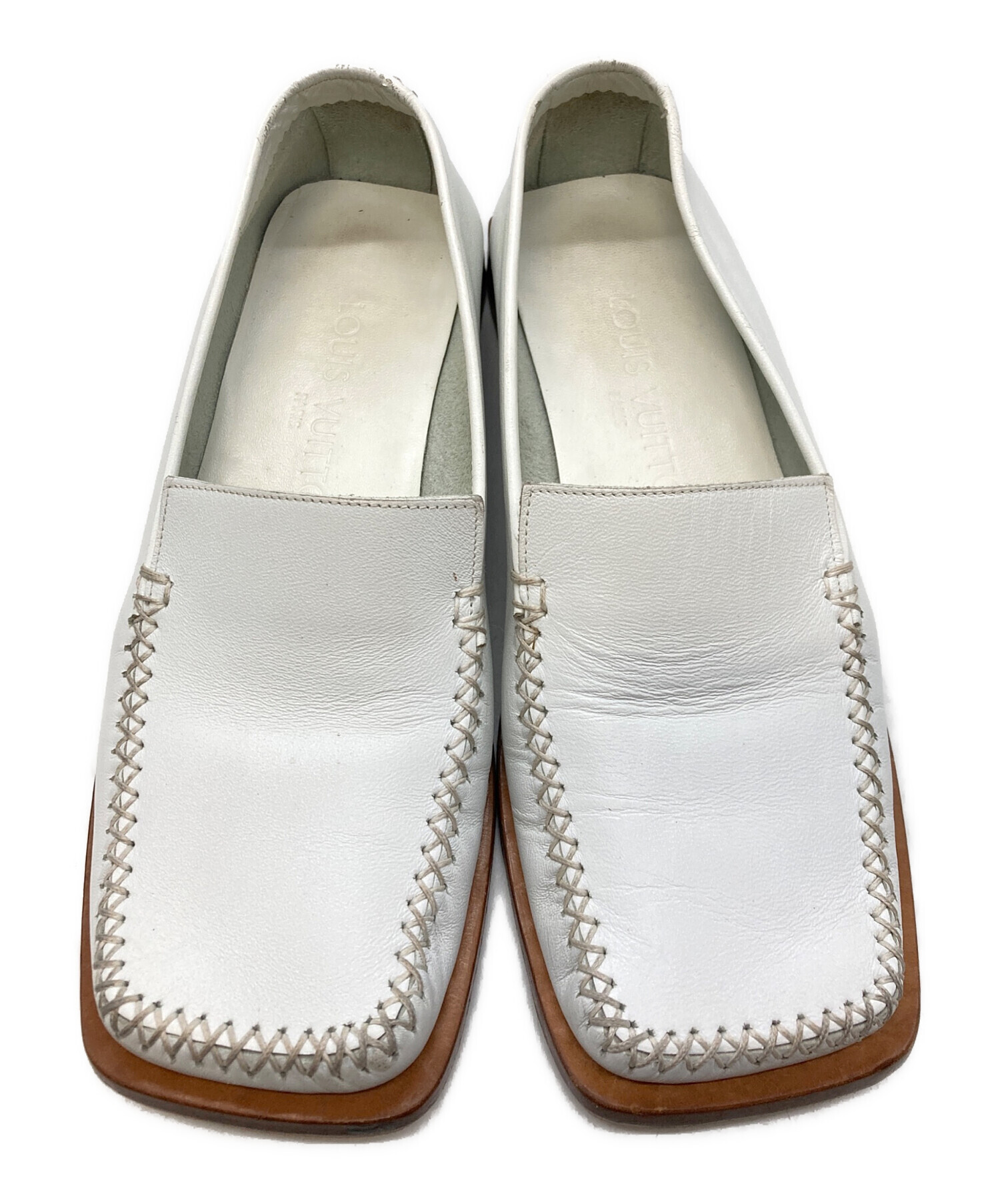 • LOUIS VUITTON(ルイ ヴィトン)LOUIS VUITTON (ルイ ヴィトン) デッキシューズ/ルイ ヴィトン/BA1002 ホワイト×ブラウン サイズ: 34 1/2の古着・服飾アイテム 履きジワ