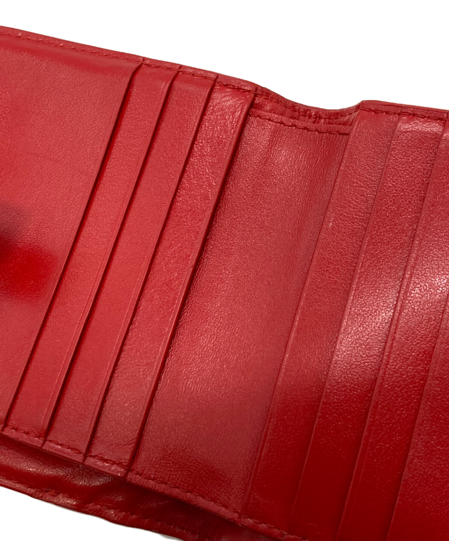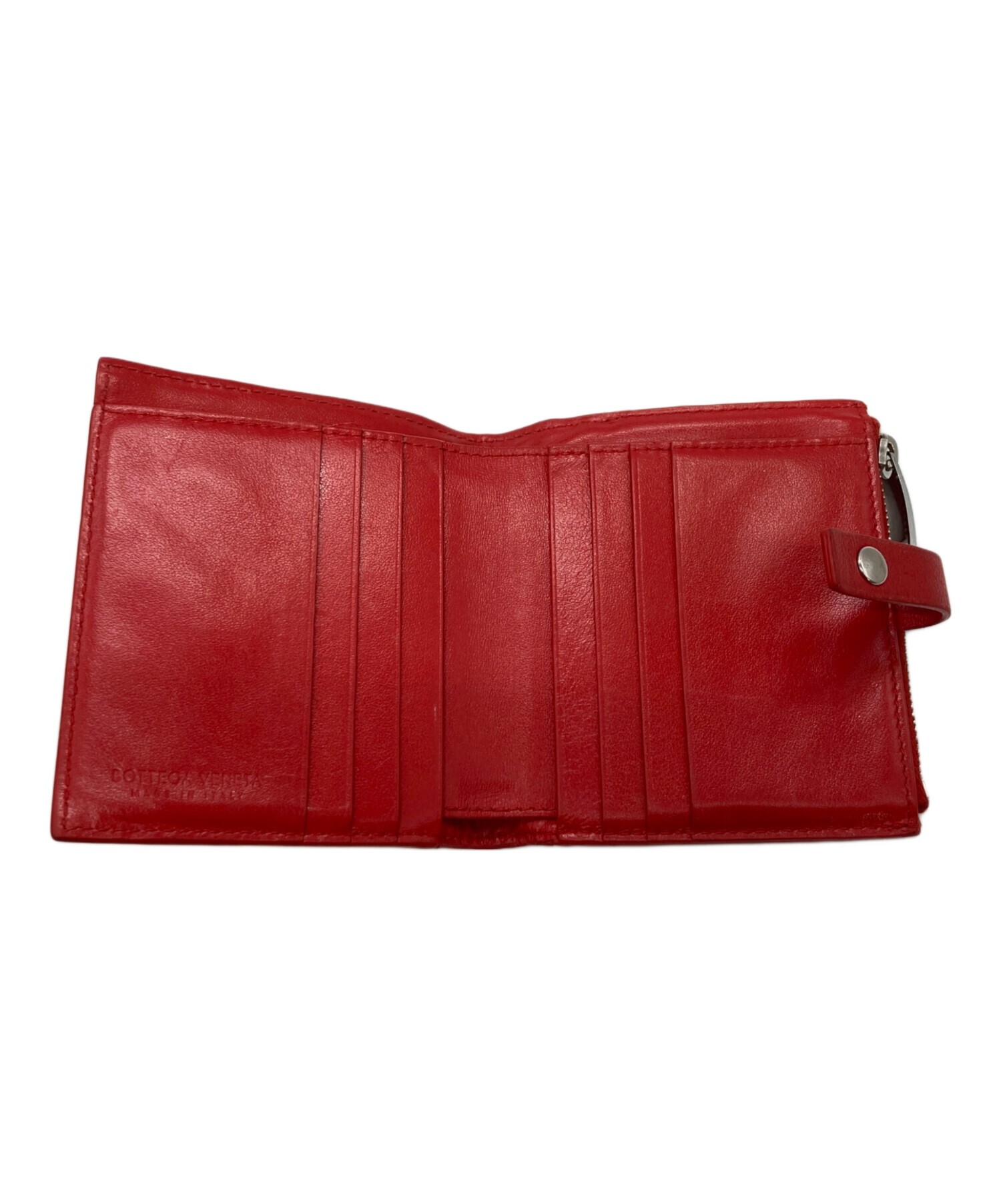 • BOTTEGA VENETA(ボッテガベネタ)BOTTEGA VENETA (ボッテガベネタ) イントレチャート2つ折り財布 レッドの古着・服飾アイテム 内部ヨゴレ