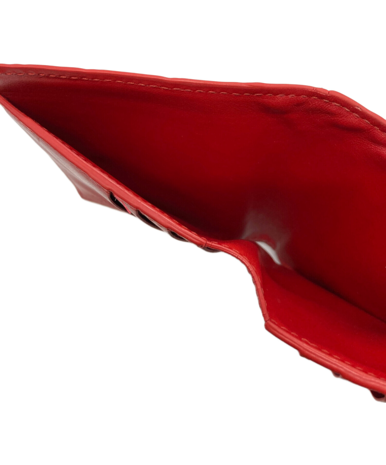 • BOTTEGA VENETA(ボッテガベネタ)BOTTEGA VENETA (ボッテガベネタ) イントレチャート2つ折り財布 レッドの古着・服飾アイテム コバ割れ