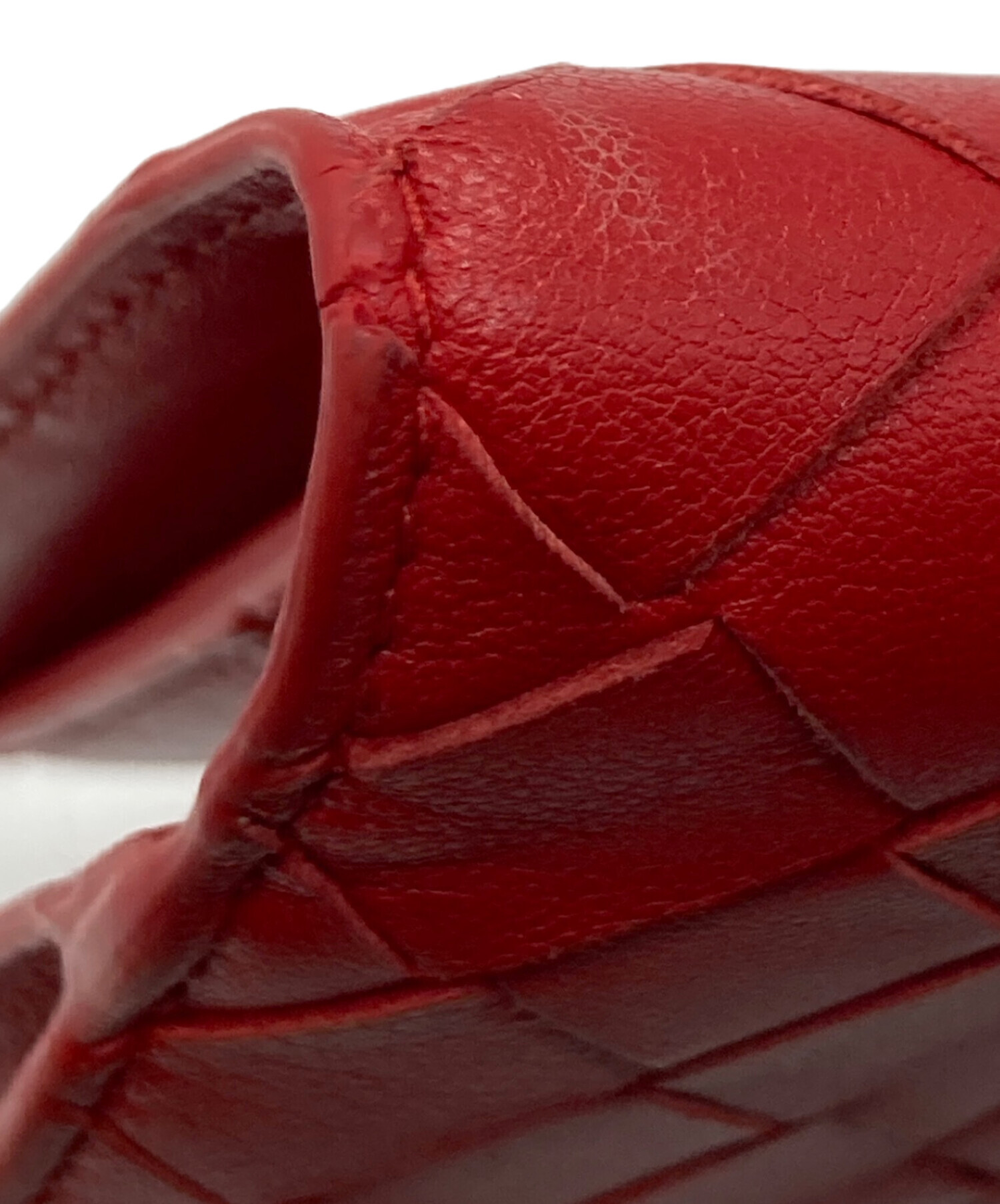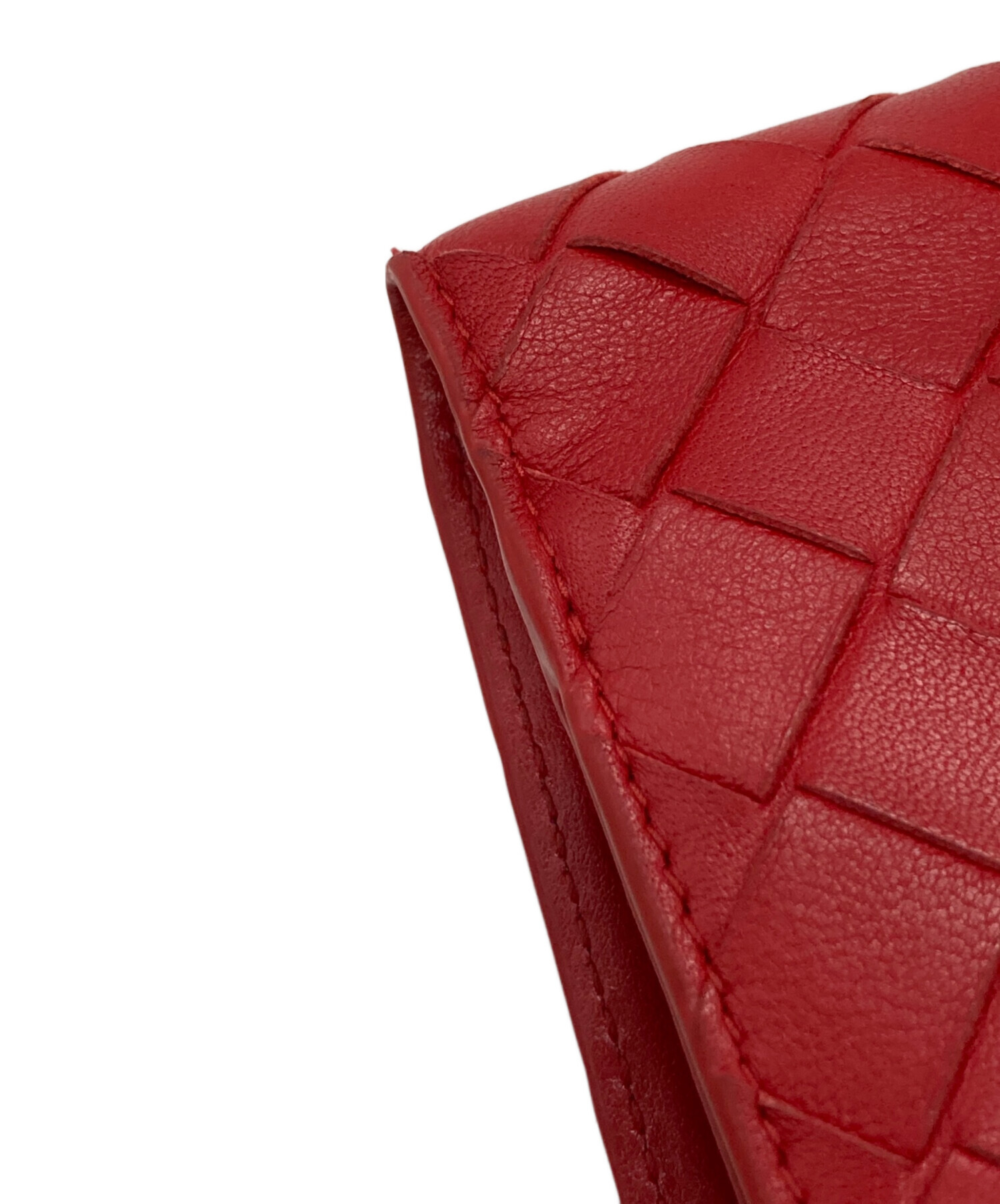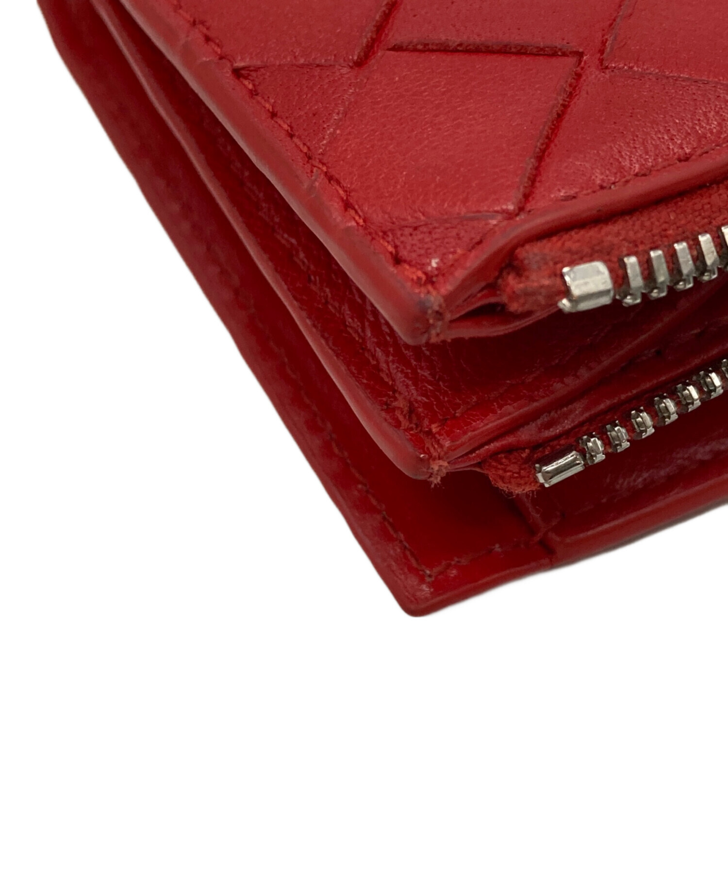 • BOTTEGA VENETA(ボッテガベネタ)BOTTEGA VENETA (ボッテガベネタ) イントレチャート2つ折り財布 レッドの古着・服飾アイテム 角スレ・ヨゴレ