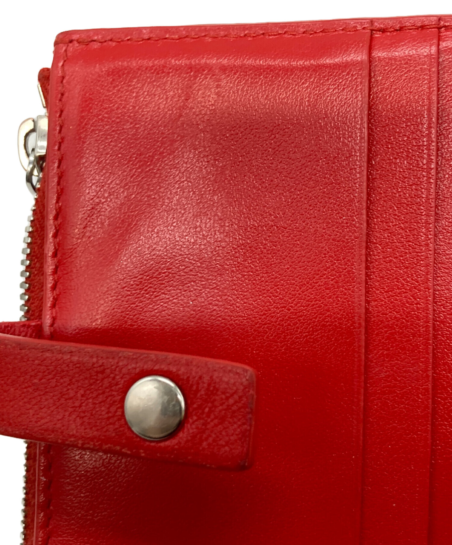 • BOTTEGA VENETA(ボッテガベネタ)BOTTEGA VENETA (ボッテガベネタ) イントレチャート2つ折り財布 レッドの古着・服飾アイテム 金具キズ