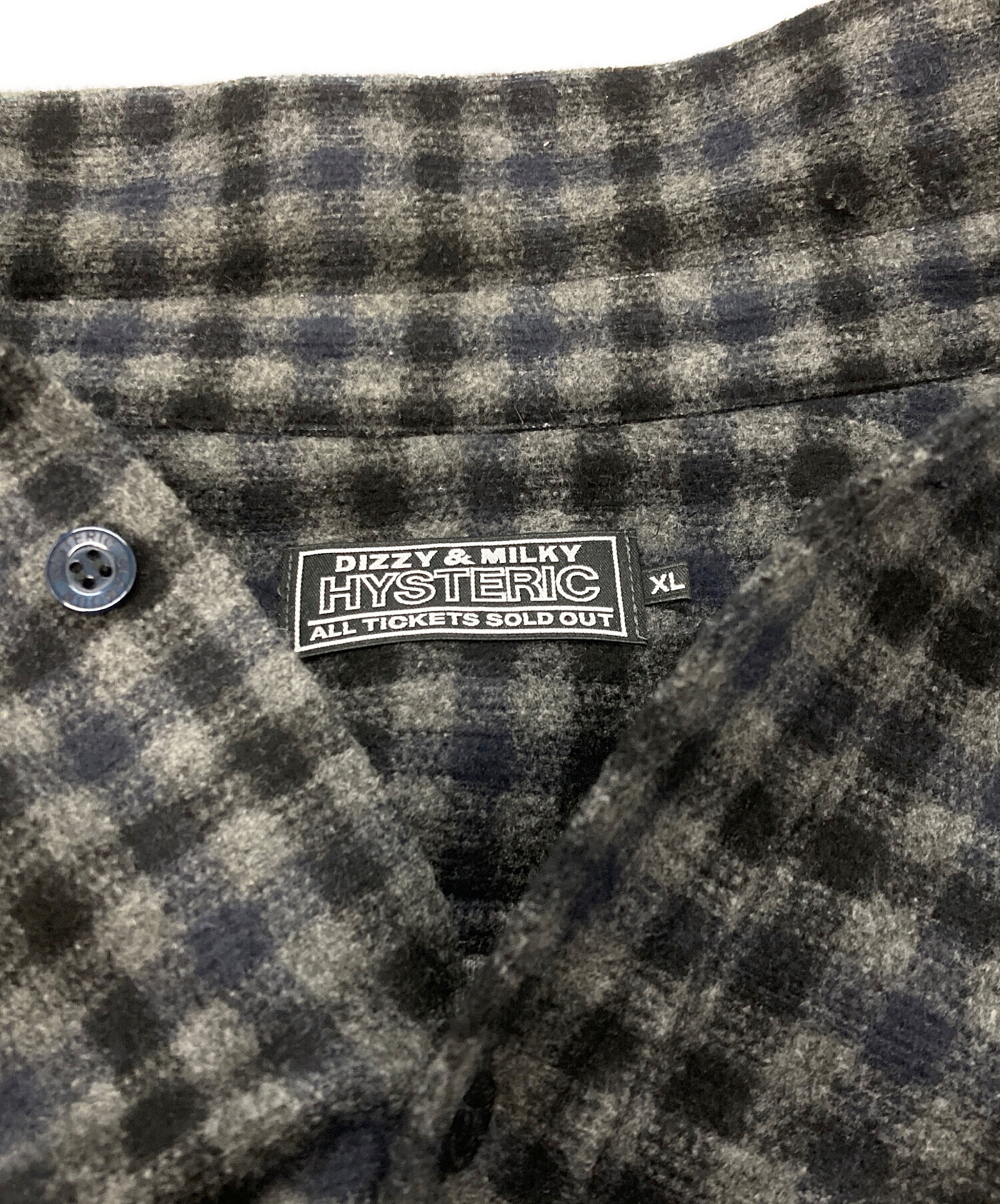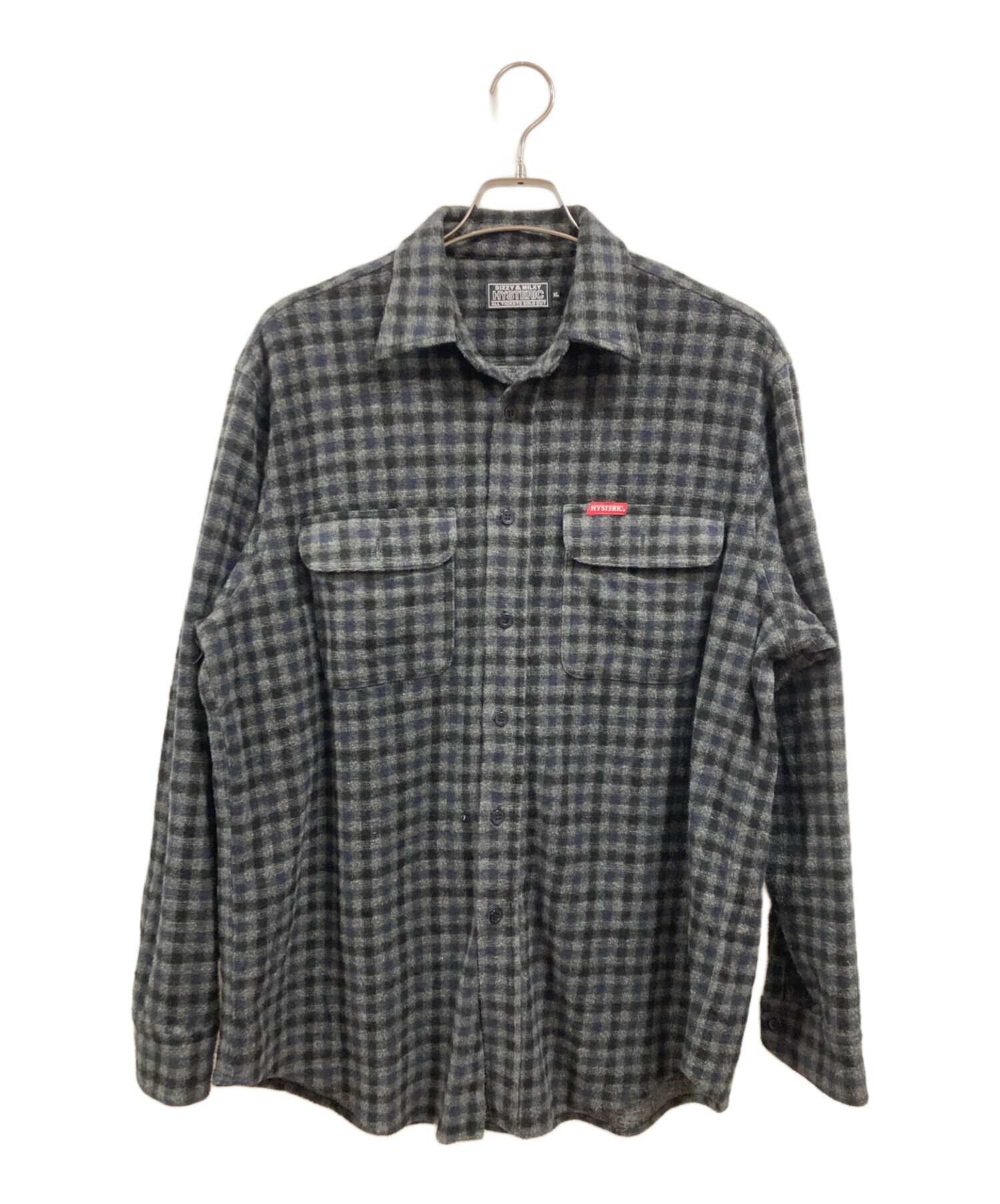 • Hysteric Glamour(ヒステリックグラマー)Hysteric Glamour (ヒステリックグラマー) THE HYSTERIC WOMAN ワークシャツ グレー×ブラック サイズ:XLの古着・服飾アイテム 各所毛羽立ち有