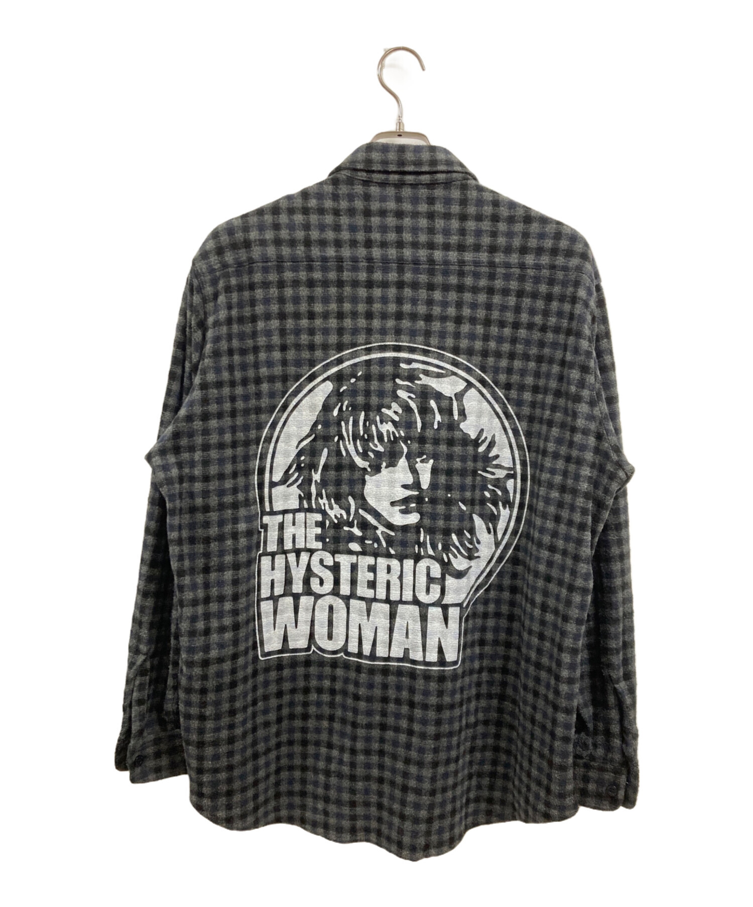 • Hysteric Glamour(ヒステリックグラマー)Hysteric Glamour (ヒステリックグラマー) THE HYSTERIC WOMAN ワークシャツ グレー×ブラック サイズ:XLの古着・服飾アイテム プリント割れ