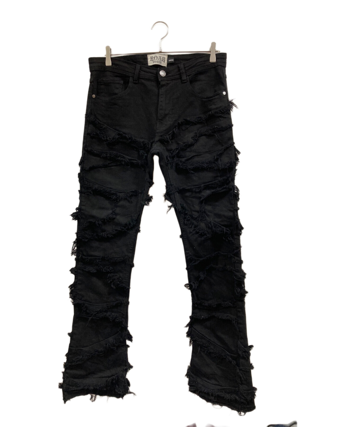 • ROAR Denim(ロアーデニム)ROAR Denim (ロアーデニム) デニムパンツ ブラック サイズ:34/34の古着・服飾アイテム 裾毛羽立ち